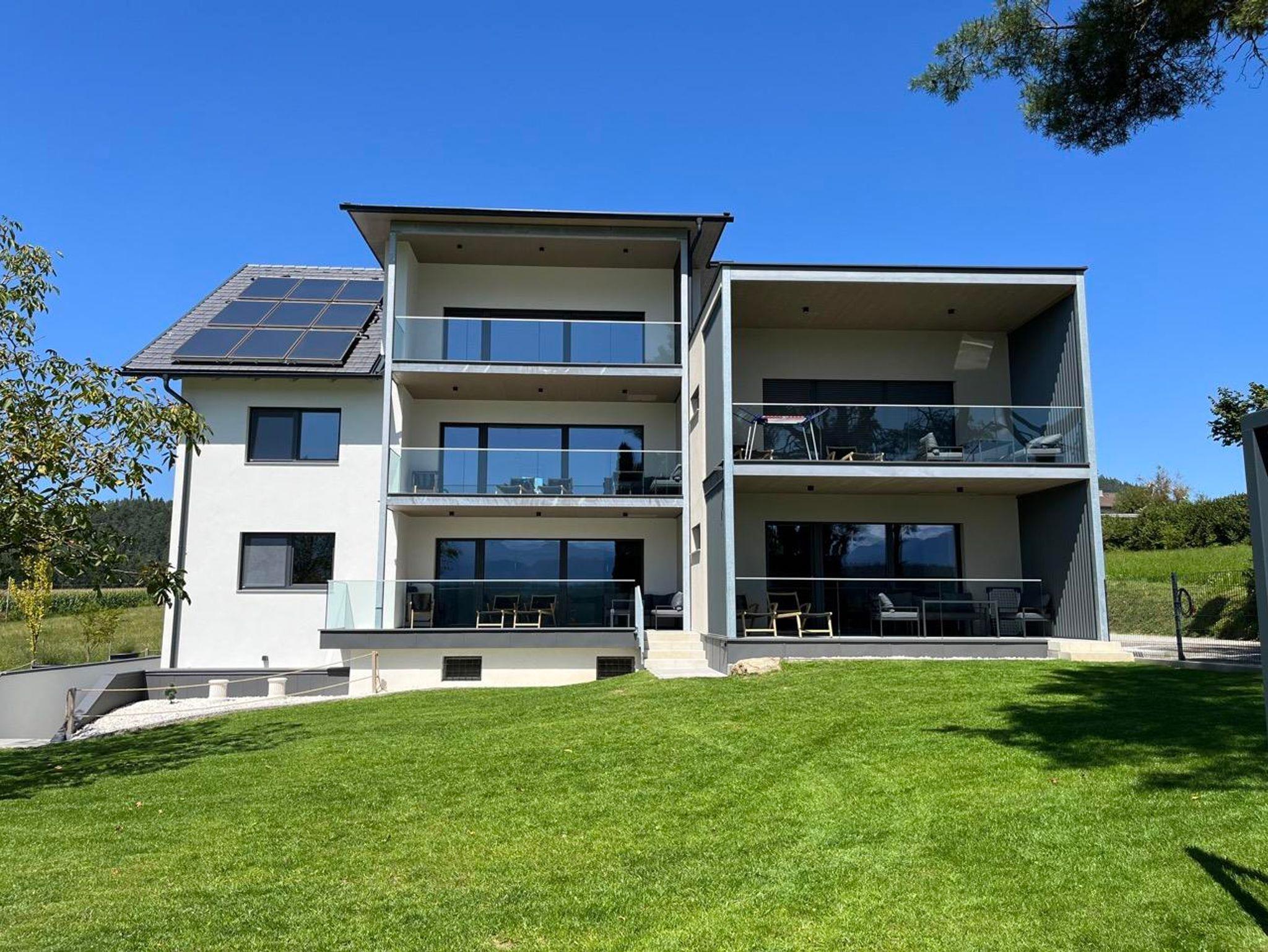 Das Appartement 3 befindet sich im 1. Stock, ist 82m2 groß und verfügt über eine 19m2 große überdachte Terrasse mit Blick auf den See. Die Terrasse ist mit Gartenmöbeln ausgestattet und lädt zum Verweilen, mit Aussicht auf die Karawanken, ein.