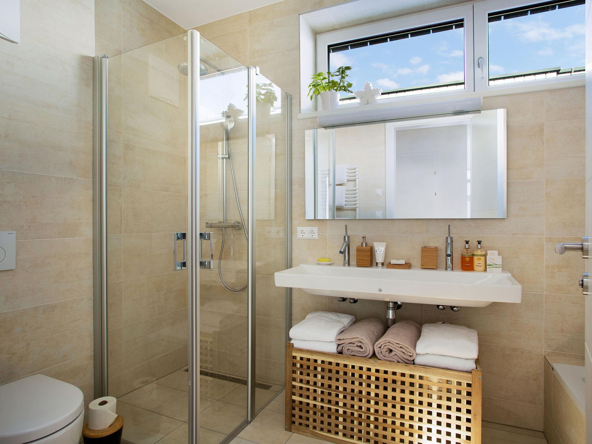 "für 11 Personen mit Sauna oder IR-Sauna", 4-room chalet 130 m2. Very comfortable and tasteful furnishings: entrance hall. Living/sleeping room with 1 double sofabed, dining table, satellite TV and flat screen. 1 room with 1 x 2 bunk beds, 1 double bed. 1 room with 1 bed and 1 double bed. 1 double bedroom. Open kitchen (oven, dishwasher, 4 ceramic glass hob hotplates, microwave, freezer, electric coffee machine). Bath/WC, shower/WC, sep. WC. Comfortable furnishings in the country house style. Terrace. Terrace furniture. Very beautiful view of the mountains and the countryside. Facilities: sauna. Internet (WiFi, free). Parking at the house. Please note: non-smokers only. The property is one of a type of property or apartment.