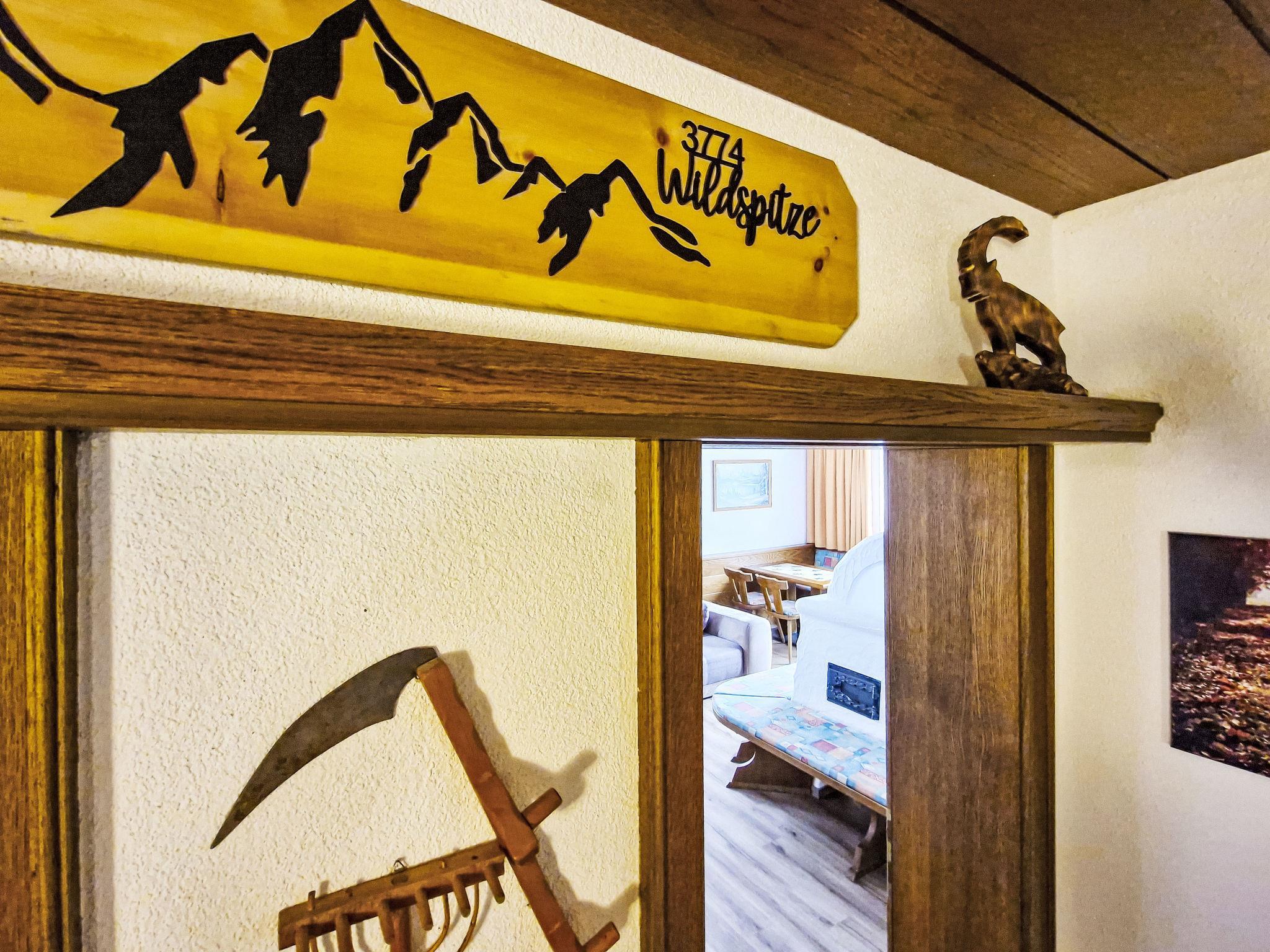 "Daheim – Wildspitz", 5-room apartment 130 m2, on the upper ground floor. Rustic and cosy furnishings: living/dining room with satellite TV (flat screen), radio. Exit to the terrace. 1 double bedroom. 2 rooms, each room with 1 bed and 1 double bed. Kitchen (oven, dishwasher, 4 ceramic glass hob hotplates, toaster, kettle, microwave, electric coffee machine) with dining nook. Bath/shower, sep. WC. Terrace. Terrace furniture. Facilities: children's high chair, baby cot. Internet (WiFi, free). Please note: non-smokers only. Maximum 1 pet/ dog allowed.