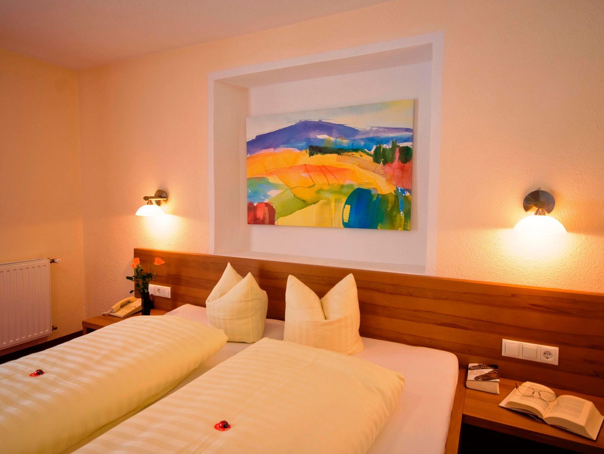 Familienzimmer für 2 - 5 Personen ca. 35 m² ohne Teppichboden, DU/WC/Kabel TV mit großer Auswahl an Programmen, Balkon, Zimmer ist aufgeteilt auf zwei getrennte Räume, 1 Doppelbettzimmer mit Sitzsofa und Schreibtisch, Kinderzimmer mit Etagenbett und Schreibtisch, Voraum,