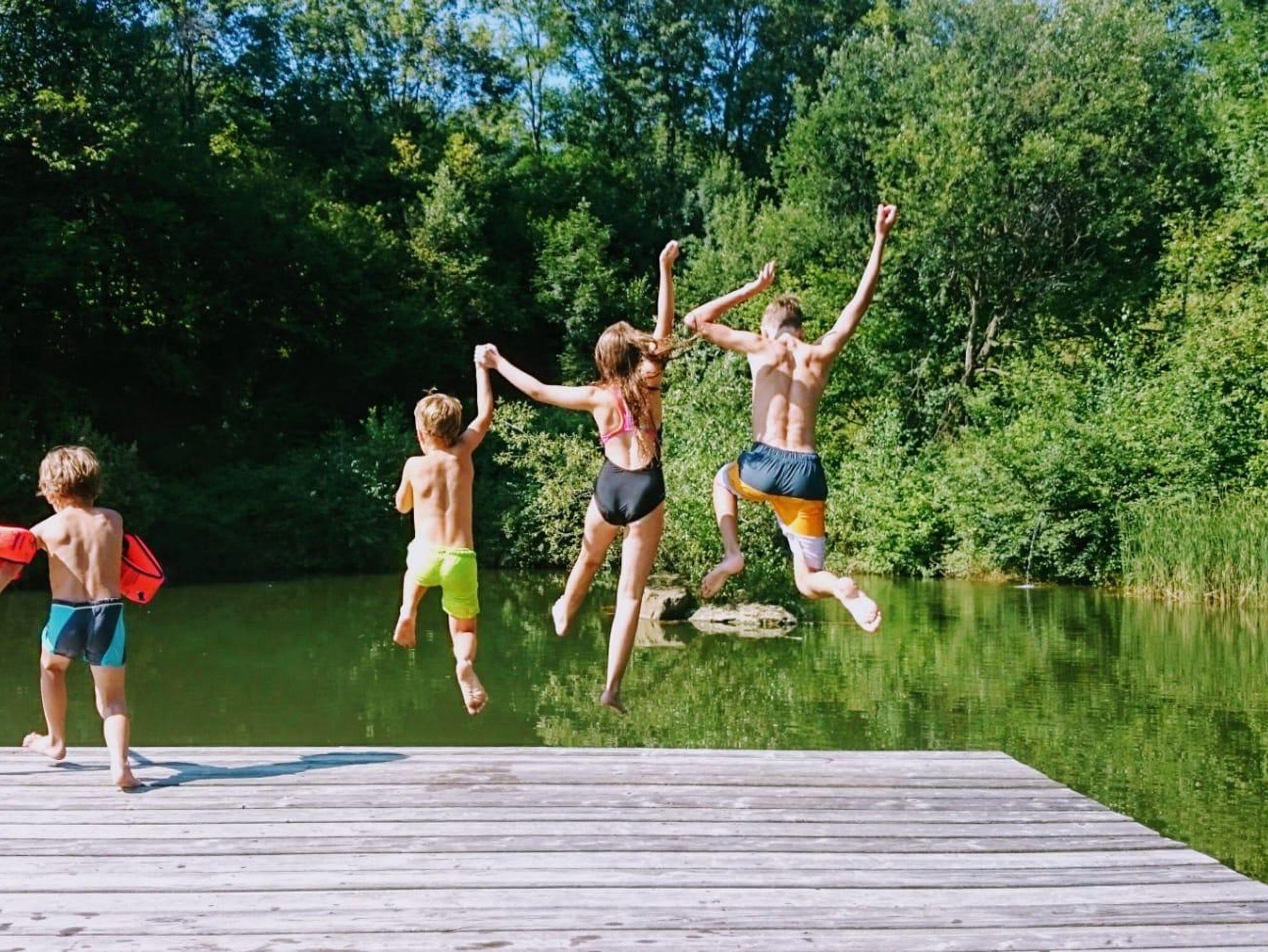 2 Holzblockhäuser neben privatem Badeteich für bis zu 8 Personen.