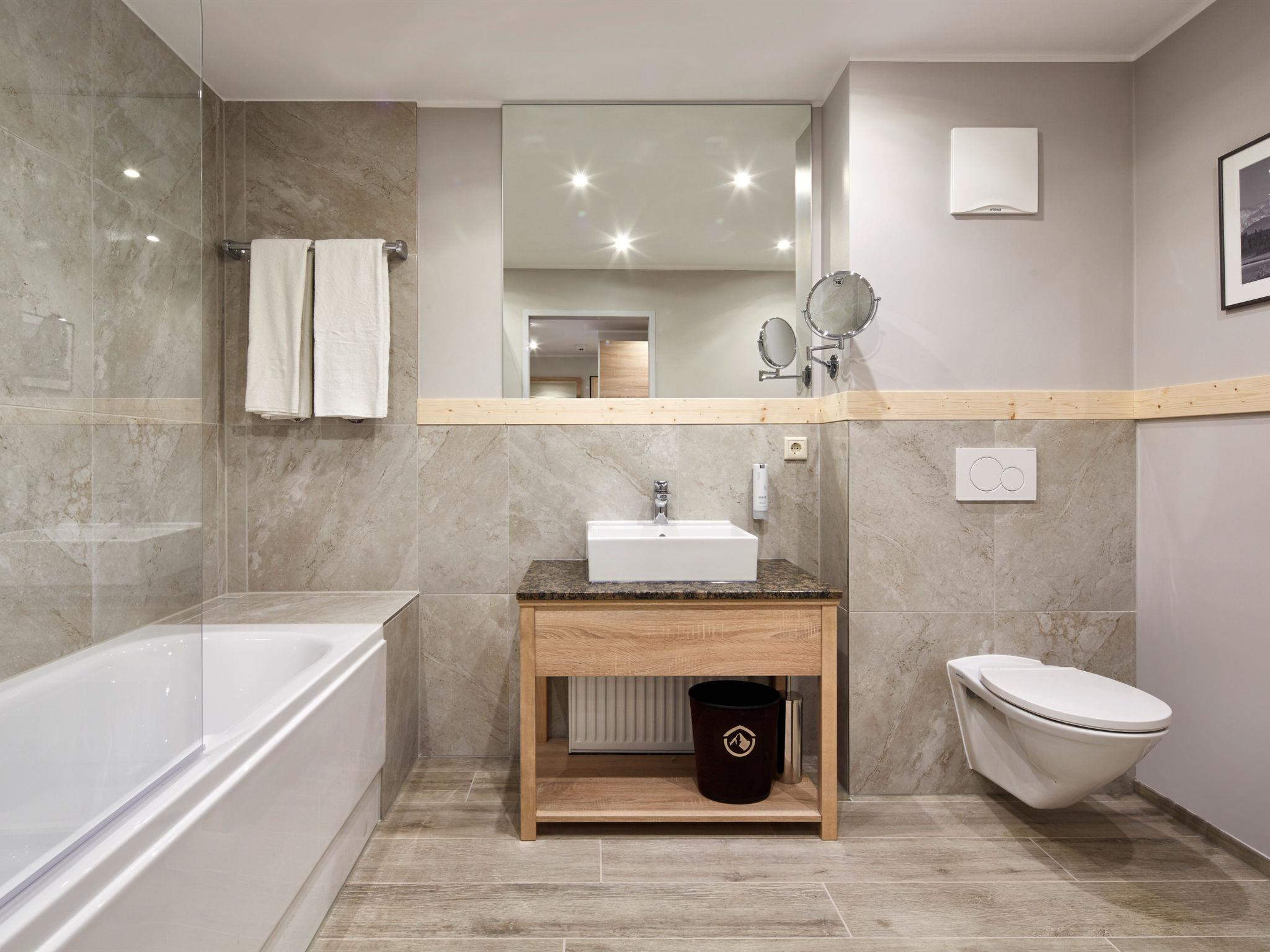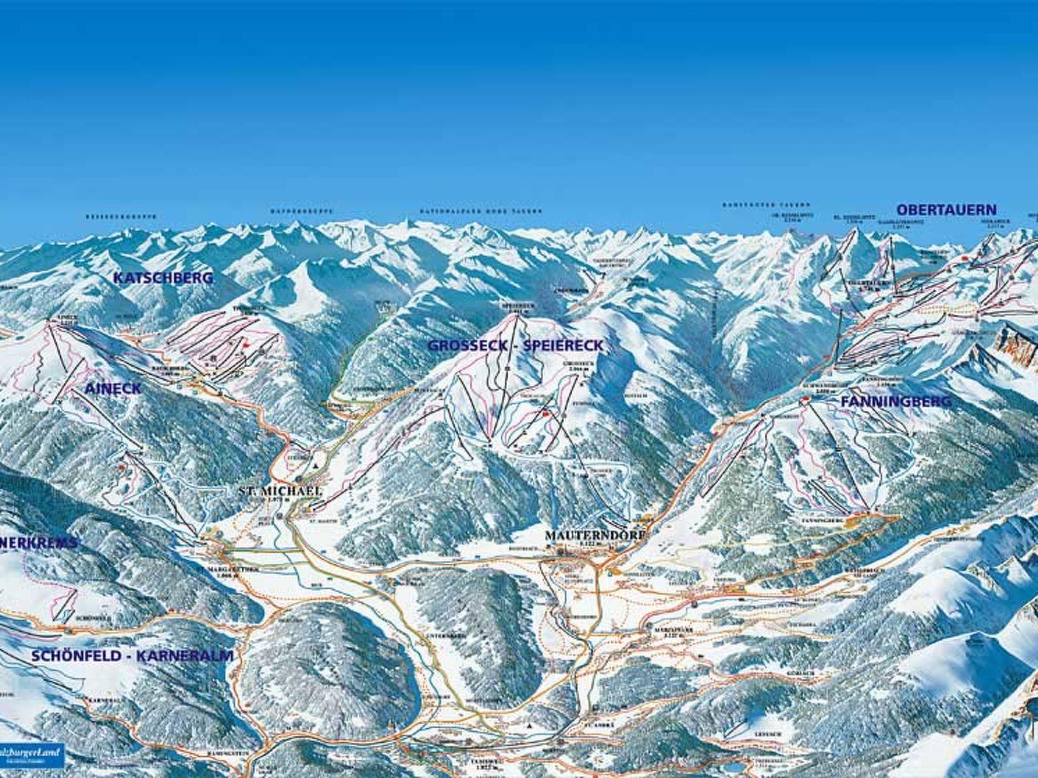 Modern, comfortable aparthotel "Alpenhaus Katschberg", 1'640 m a.s.l.. 78 apartments in the residence. 350 m from the centre of Katschberghöhe, 6 km from the centre of St. Michael, in a secluded position, 20 m from the skiing area. For shared use: indoor pool heated (12 x 4 m, depth 140 cm). In the house: reception, restaurant, bar, sauna, fitness room, steam room (all included), relaxation room, playroom, storage room for skis, central heating system, washing machine, tumble dryer (for shared use, extra), ski boot dryer. Bread roll service and breakfast possible (extra). Parking (extra). Shop 350 m, bus stop "Katschberghöhe" 180 m. Walking paths from the house 50 m, ski lift, slopes 20 m, ski rental 50 m, ski school 20 m. You can borrow a bathing bag with a bathrobe, 1 bath towel and bathing shoes (for a fee). Mandatory parking space, depending on availability, either outside on the property (€ 8/day) or in the garage (€ 8/day). The apartments are on the 2nd, 3rd or 4th floor. Bread roll service for a fee! Please ensure that the apartment is tidied up when you leave and that any remaining food and rubbish has been removed. We reserve the right to charge additional costs for the extra cleaning work if the apartment is disproportionately dirty.