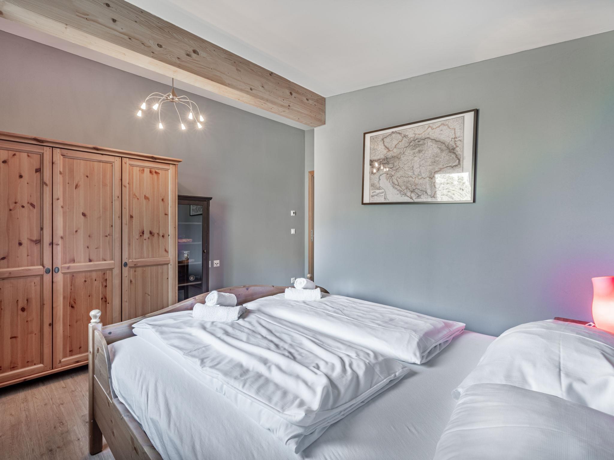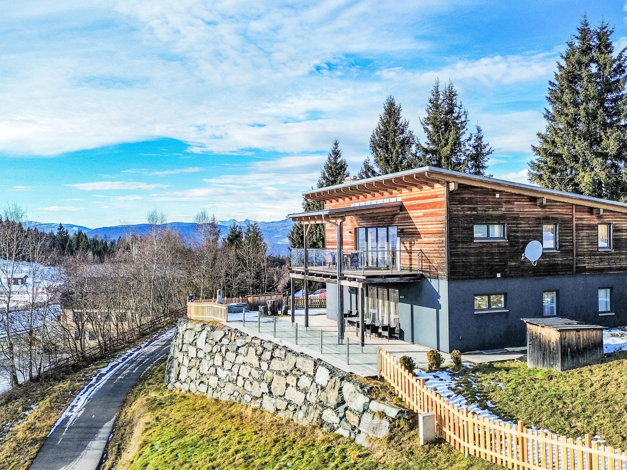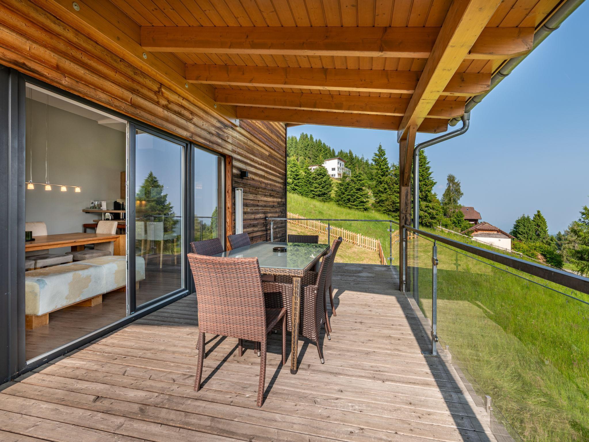 "Kärntentraum 2", 4-room apartment 110 m2 on 1st floor. Object suitable for 6 adults. Bright, comfortable and modern furnishings: upper floor: (exterior staircase) living/dining room with Scandinavian wood stove, satellite TV and flat screen. Exit to the balcony. (exterior staircase), 1 double bedroom with 1 double bed (2 x 90 cm, length 200 cm), bath/shower/WC. Exit to the balcony. 2 double bedrooms, each room with 1 double bed (160 cm, length 200 cm). Open kitchen (oven, dishwasher, 4 ceramic glass hob hotplates, toaster, kettle, freezer, electric coffee machine, Capsules for coffee machine (Nespresso mitbringen)). Shower/WC. Underfloor heating. Natural stone floors. Large balcony. Balcony furniture, deck chairs. Marvellous panoramic view of the mountains. Facilities: Internet (WiFi, free). Please note: suitable for families. Maximum 1 pet/ dog allowed. Smoke alarm, fire extinguisher, no lift. Underfloor heating. One double room has a bathroom/toilet en suite.
