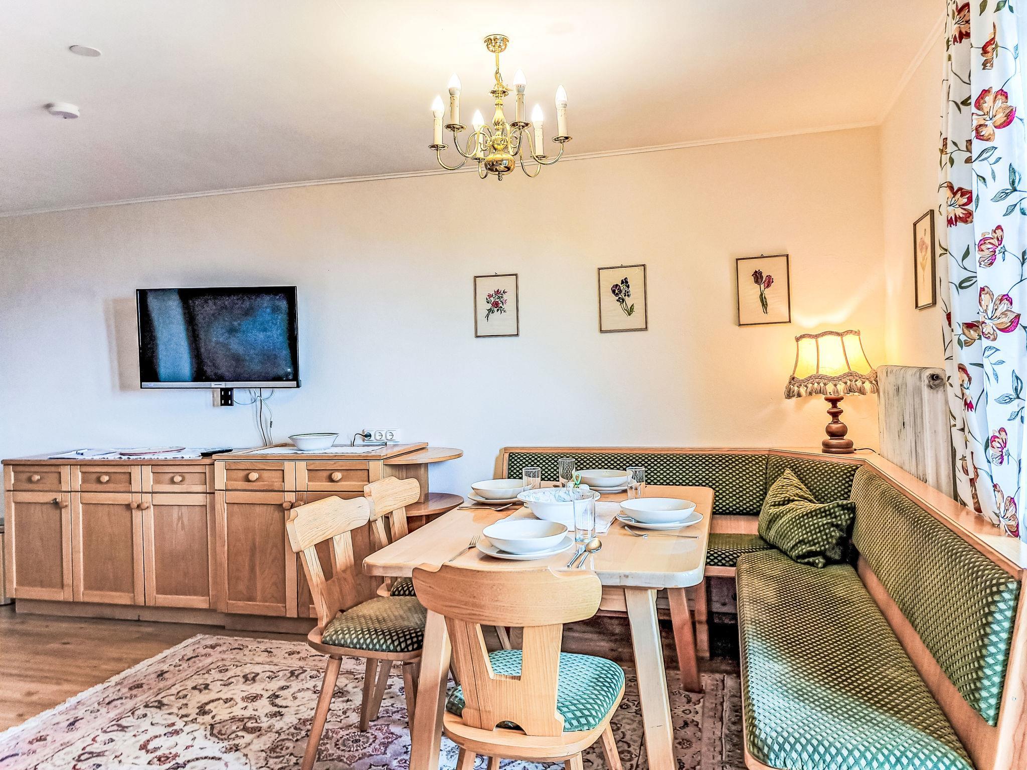 "Veitsberg", 2-room apartment 50 m2, on the upper floor. Object suitable for 4 adults. Renovated in 2025: living/dining room with 1 double sofabed (140 cm, length 200 cm), dining nook, satellite TV and flat screen. Exit to the balcony. 1 double bedroom. Kitchenette (dishwasher, electric coffee machine). Shower/WC. Wooden floors. Comfortable furnishings in the country house style. Small balcony. Balcony furniture. Very beautiful panoramic view of the mountains and the countryside. Facilities: baby cot, hair dryer. Internet (WiFi, free). Please note: suitable for families. Non-smoking house. Smoke alarm, fire extinguisher.