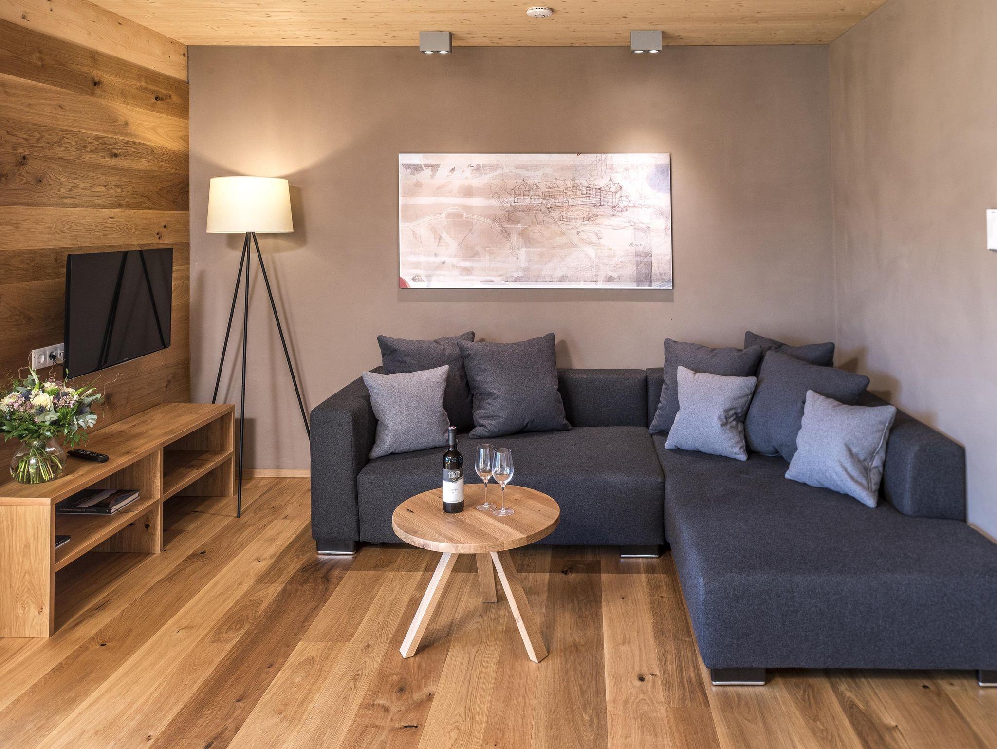 Die vier Designerwohnungen sind vollkommen gleichwertig gestaltet. Sie befinden sich im ersten oder zweiten Obergeschoss. Alle verfügen über herrlichen Seeblick und sind zusätzlich mit Lift erreichbar. Der großzügige Wohnbereich mit integrierter Küche ist nach Süden zu Terrasse und See ausgerichtet. Neben zwei Schlafräumen mit Doppelbetten verfügt die Wohnung über ein Bad mit Dusche und ein getrenntes WC. Die innen sichtbare Massivholzbauweise in Eiche und Fichte, sowie Zirbe in den Schlafräumen, kombiniert mit Tonwänden, edlen Details und Designermöbeln bieten eine besonders gemütliche Atmosphäre.