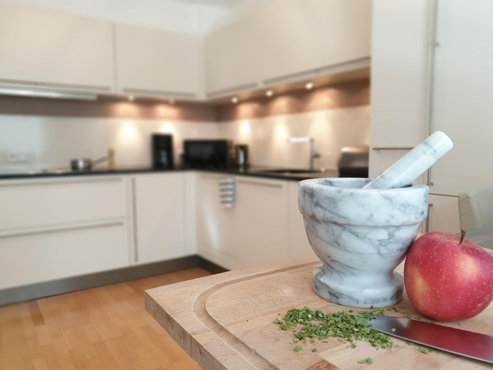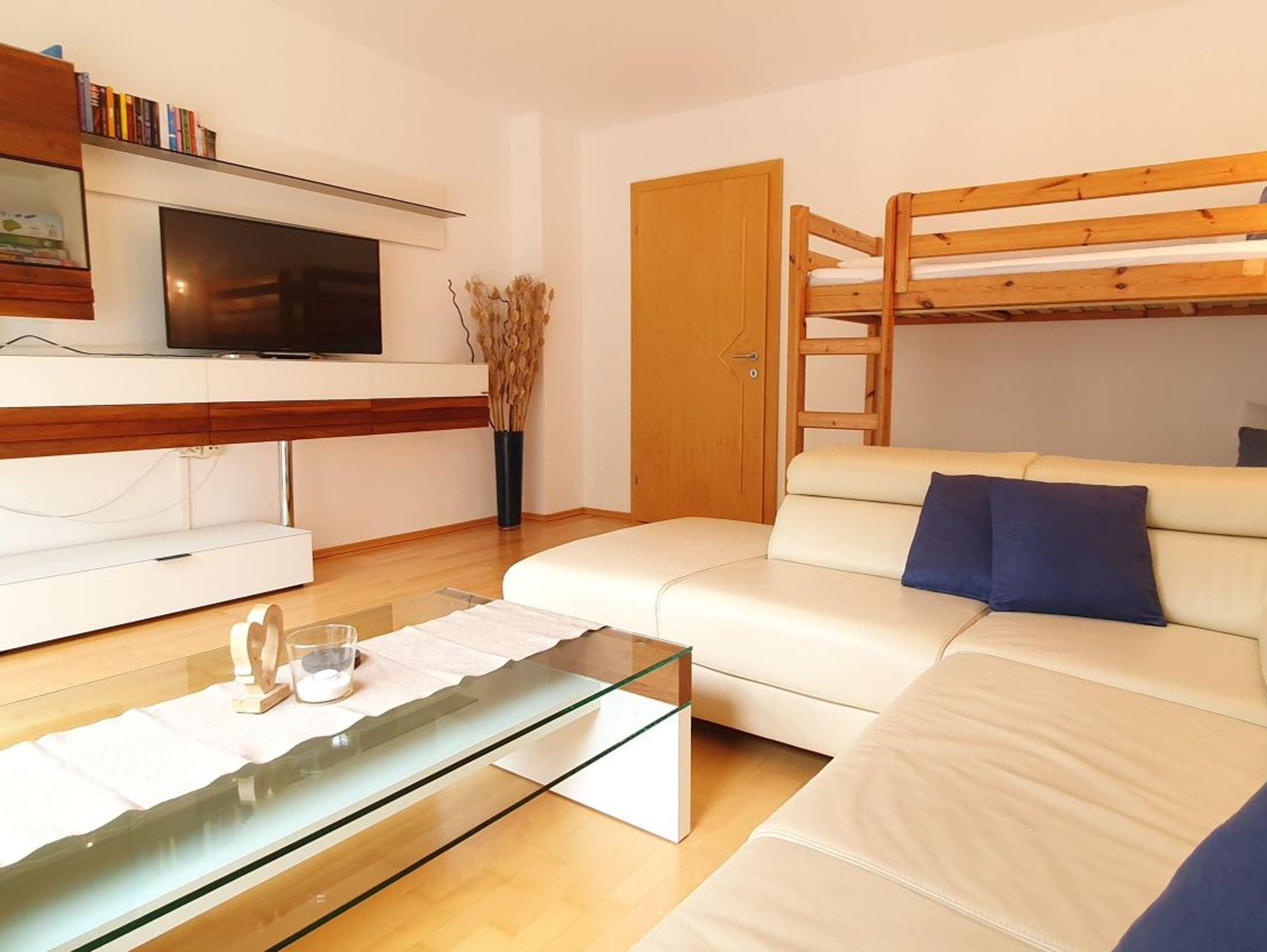 Hochwertige Wohnung in ruhiger Hanglage mit sonnigem Südbalkon. Heller Wohnraum mit Ledercouch/Schlafcouch, Smart-TV und Etagenbett. Separate komfortable Küche mit Induktionskochfeld, großem Esstisch und Bar. Geräumiges Schlafzimmer mit Doppelbett, großem Kleiderschrank und angrenzendem Badezimmer mit WC, Waschbecken und ebenerdiger Dusche. Ein weiteres Badezimmer mit WC, Waschbecken und Badewanne befindet sich neben der Küche. Elektrische Jalousien auf der gesamten Sonnenseite und über alle Zimmer Zugang zum Balkon.