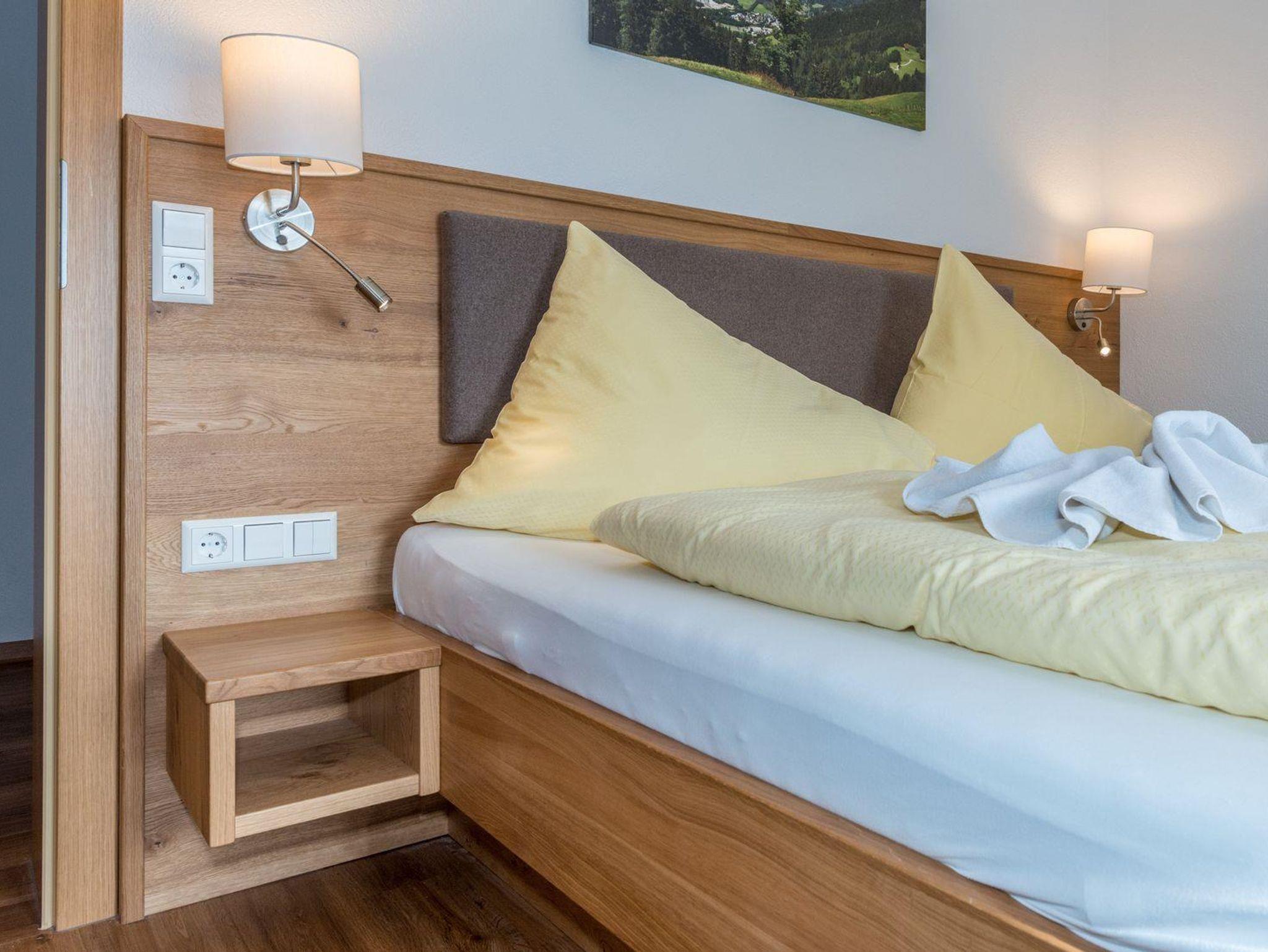Die Ferienwohnungen Wiesengrün und Himmelblau (60m²) mit herrlichem Ausblick in die Bergwelt! 2 Schlafräume mit je 2 Betten, große Wohnküche mit Flat TV, freies W-Lan, Bad und Toilette sind getrennt. Option für 2 Zusatzpersonen in der Wohnküche ist eine Ausziehcouch. Dazu ein großer Vorraum, großer nach Süden ausgerichteter Balkon mit Blick in die Berge. Frühstück oder Halbpension auf Anfrage zubuchbar!