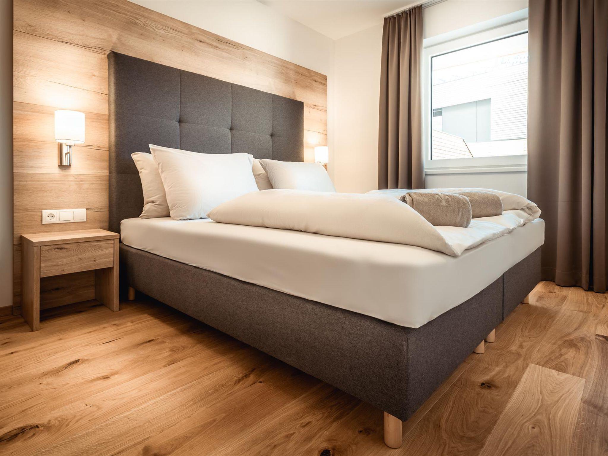 Eben alles was man so braucht. By the way: Das Auto kannst du in der Tiefgarage lassen. Servus im Gustav – 8 Appartements von Smart bis Sky – außerdem mit dabei: Private Sauna im Appartement, eigene Terrasse oder Balkon Top 8 hat keine Balkon, komplett ausgestattete Küchen mit allem PiPaPo, 1-2 Schlafzimmer und Bäder sowie eine Aussicht nach Westen auf die Hochwurzen und das eine oder andere Chi-Chi.