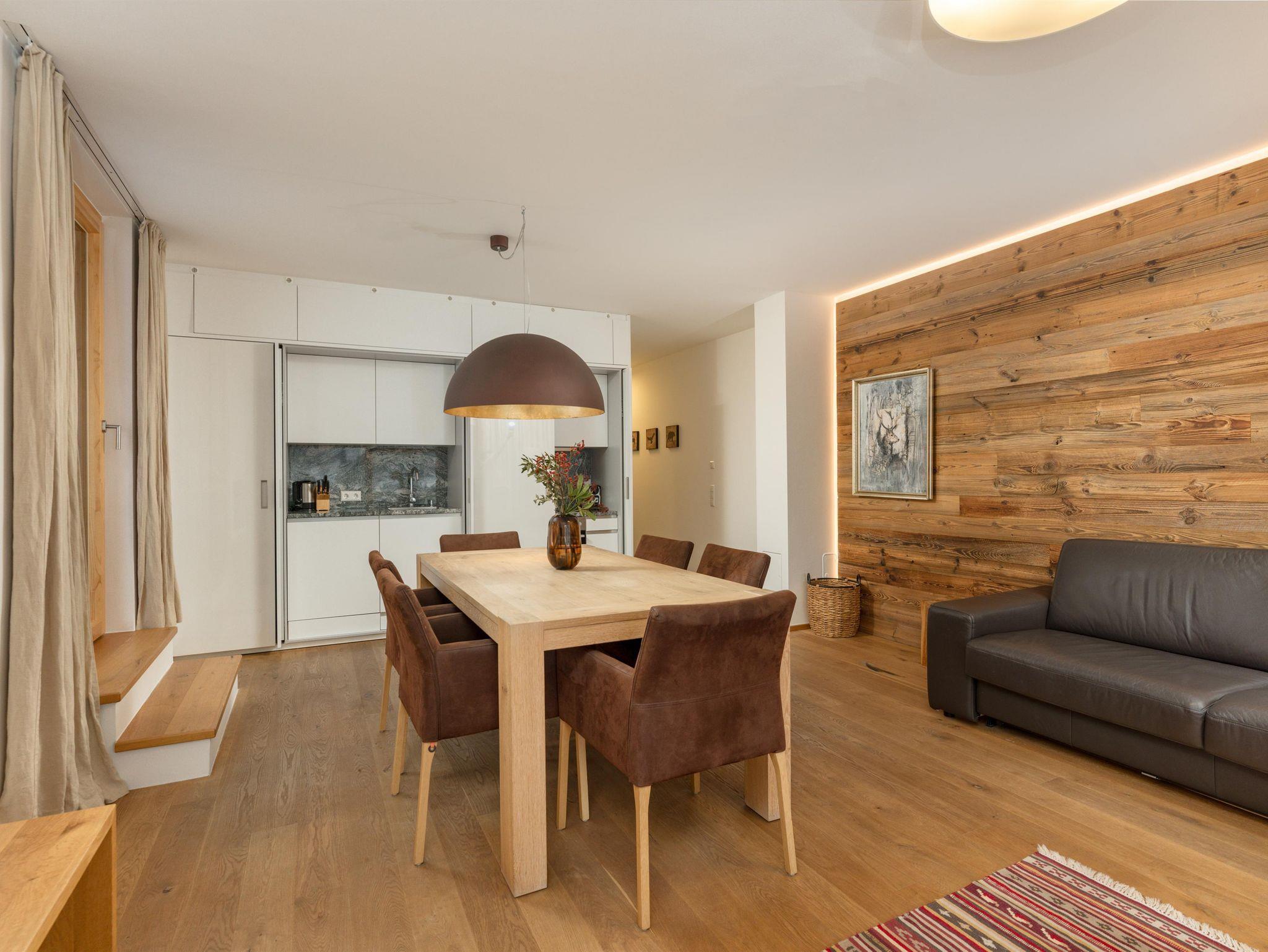 3 miteinander verbunden Häuser 38 servicierte Appartements, von 40m² Studios, Appartements mit einem, zwei oder drei Schlafzimmern bis hin zu 130m² Penthäusern, herrlichen Ausblick und Top Ausstattung inklusive! Die hochwertige Grundausstattung der Appartements mit heimischen Materialen wie Holz, Stein und Glas vermitteln ein modernes Wohlfühlambiente mit viel Licht und Aussicht, - eine Symbiose aus purem Lebensgefühl und Kraftplatz an der Sonne. Komplett ausgestattete Designküchen, großzügige Wohnräume zum Teil mit offenem Kamin, moderne & stylische Möbel, kostenfreies WLAN, Kabel TV in allen Schlaf- und Wohnräumen sowie moderne und lichtdurchflutete Badezimmer, lassen für den Gast, der seine private Freiheit schätzt, keine Wünsche offen .