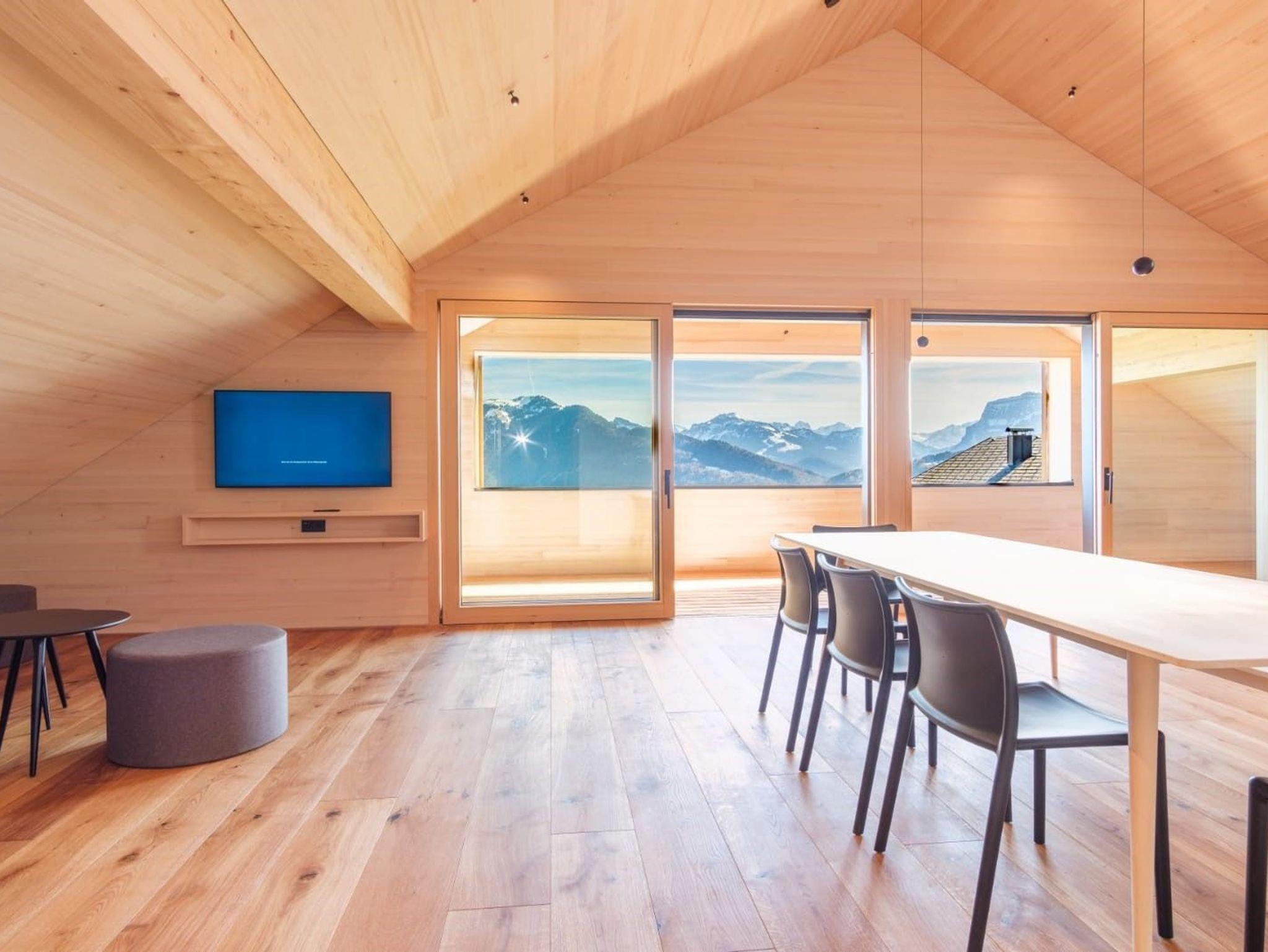 In den Jahren 2023 gebaut - ein an die Architektur des Bregenzerwaldes angepasstes Haus mit 8 Ferienwohnungen in höchster Ausstattungsqualität. Jede unserer Ferienwohnungen hat einen atemberaubenden Blick in die Natur. Viel Holz und etwas Sichtbeton schaffen eine zurückgenommene, jedoch heimelige Atmosphäre, Behaglichkeit und Ruhe durch die Reduktion von Material und Farbe. Direkt vor der Haustüre starten Wander-, Ski- oder Radtouren.