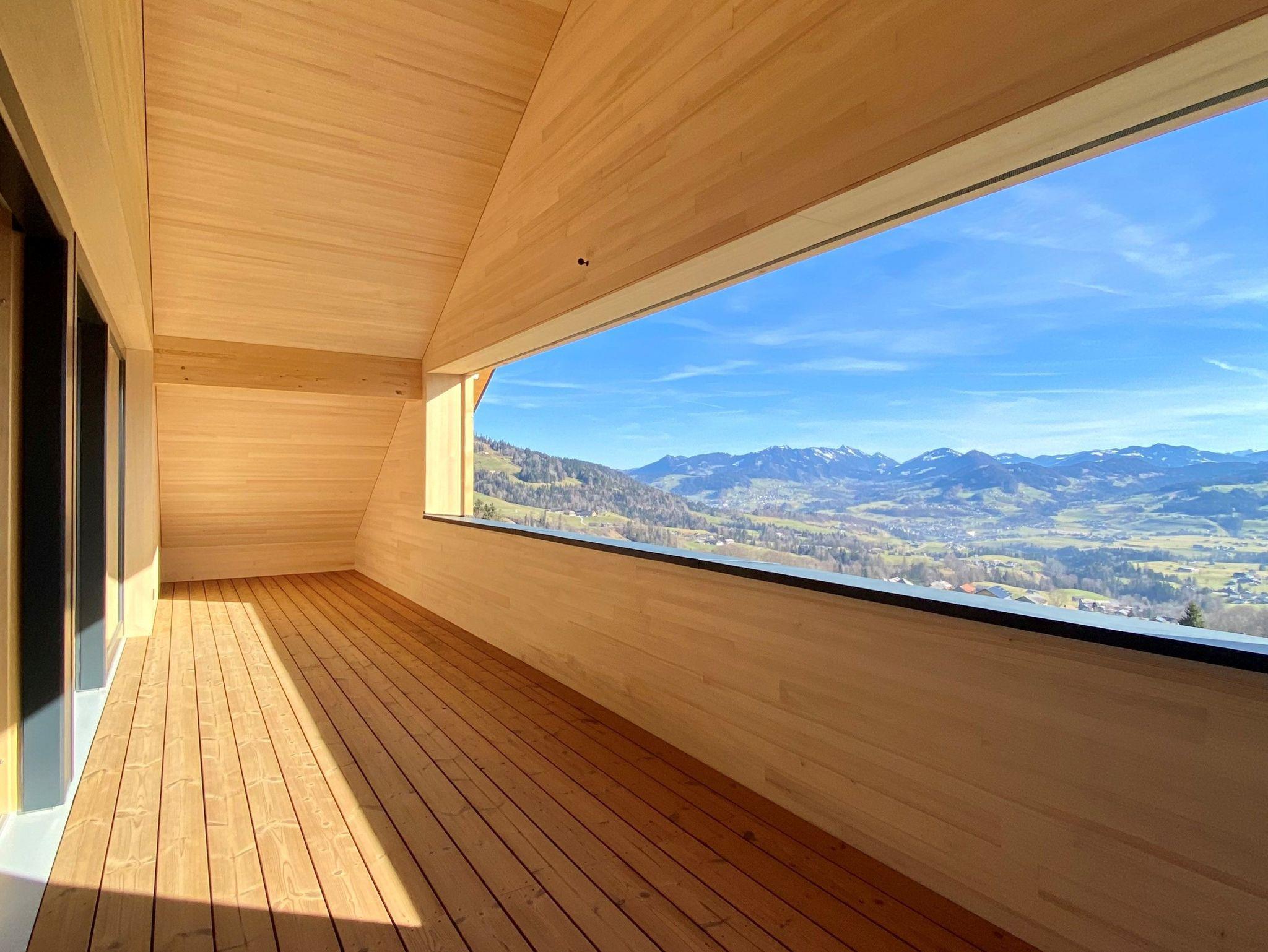 • eine 30 m² große Ostterrasse bietet einen unglaublichen Blick über den Bregenzerwald und die Berge, die 25 m² große Westterrasse vor der Sauna und zwei Schlafzimmern ist bergseits gerichtet und gibt den Blick in Richtung „Bödele“ frei.