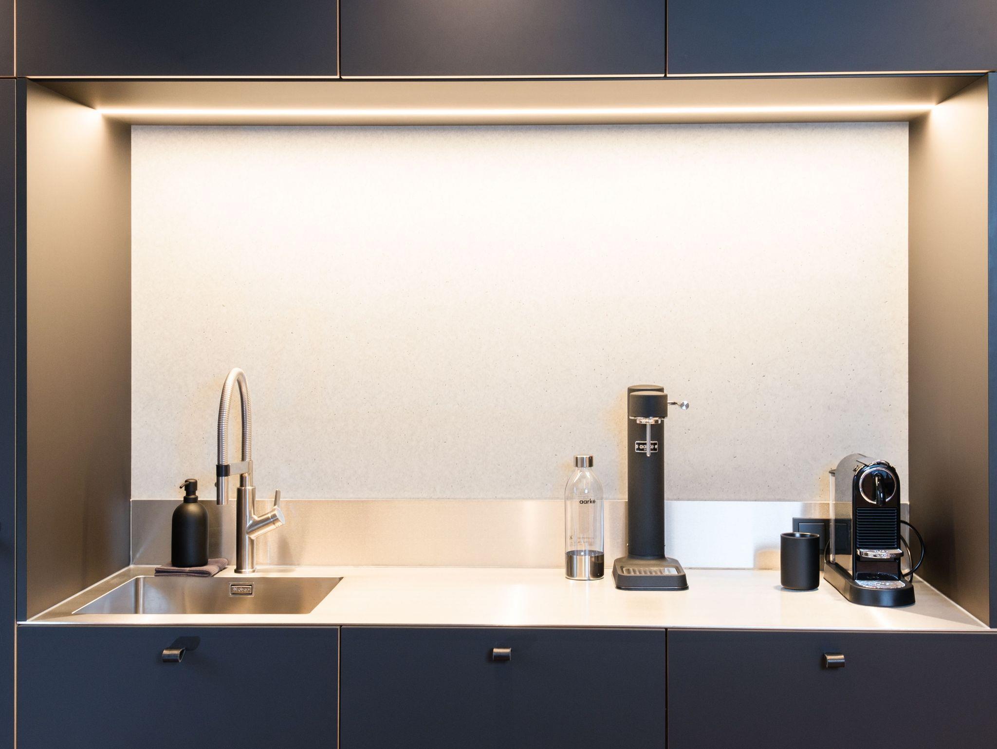 • Gut ausgestattete moderne Küche mit Küchenzeile und Kochinsel (Induktionsherd, Nespresso Maschine, Aarke Sodasprudler, etc.)