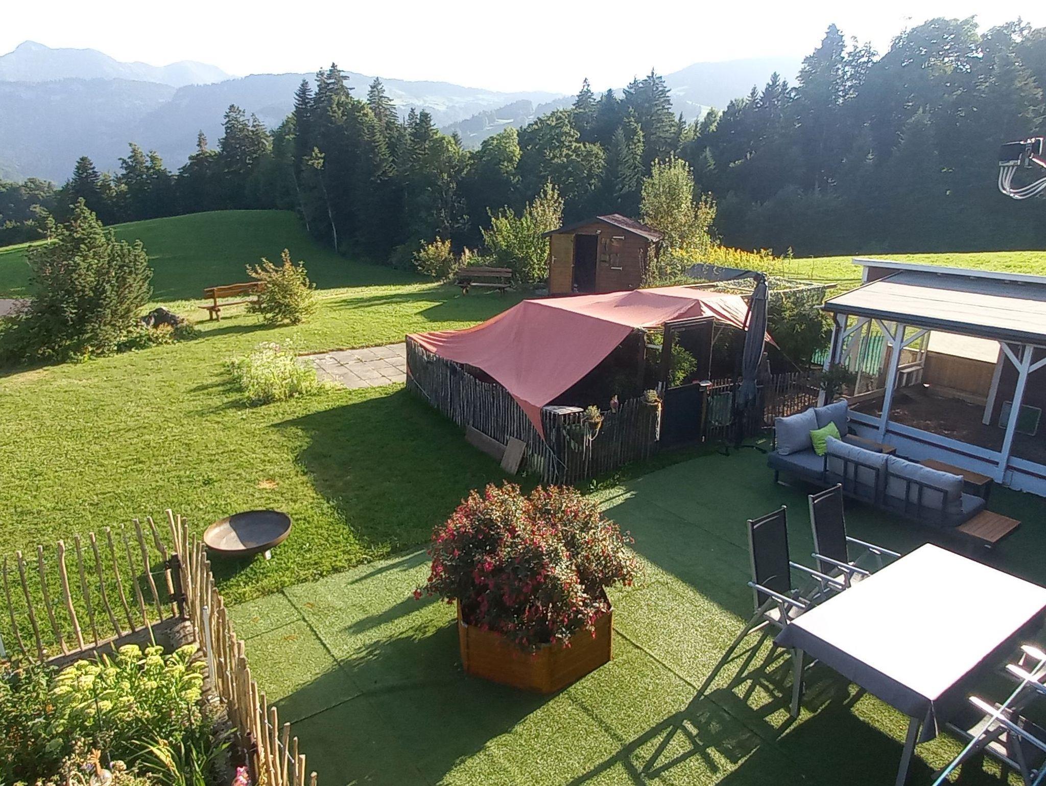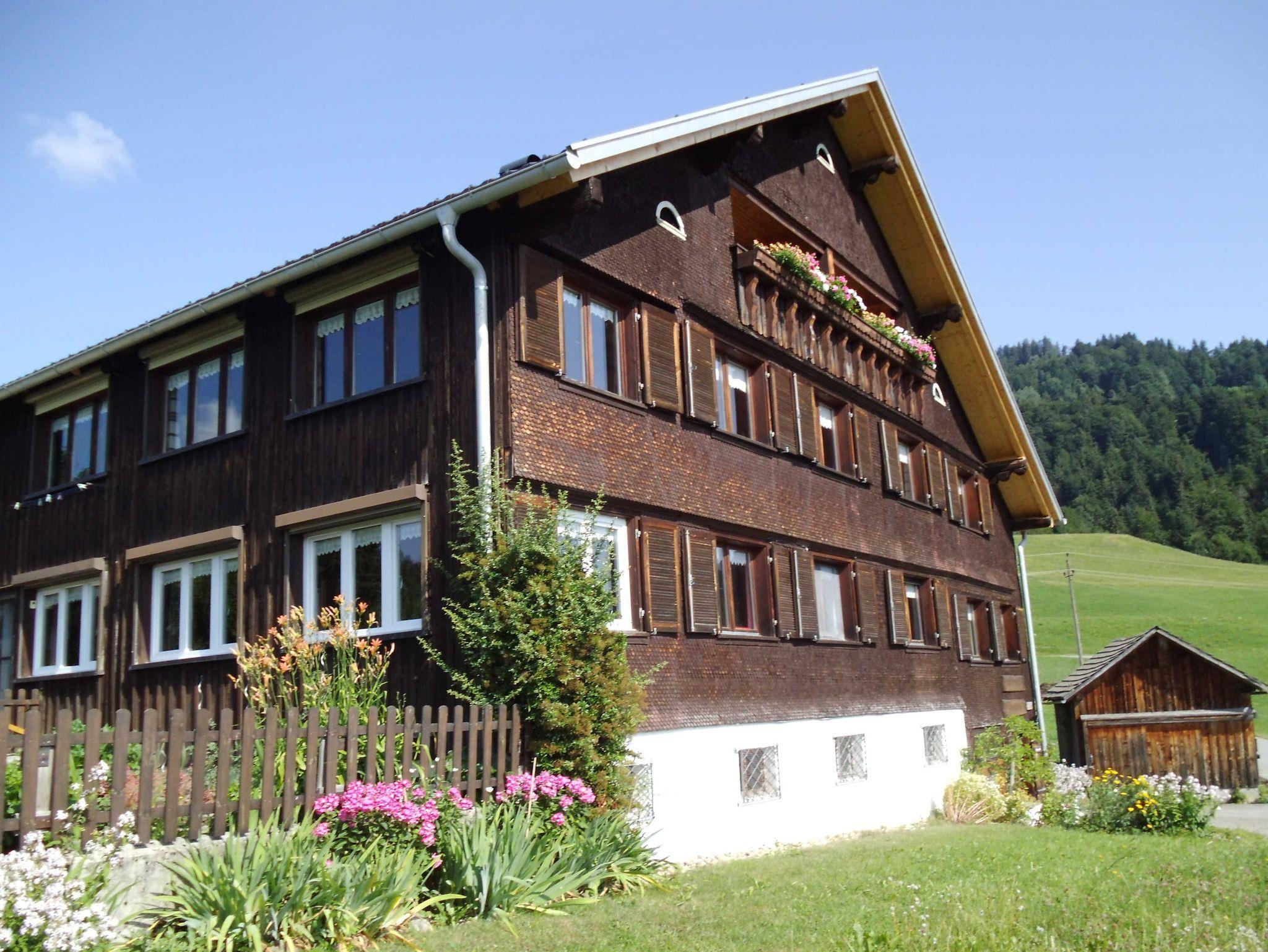 Die gemütlich und traditionell eingerichtete Ferienwohnung verfügt über 2 Schlafzimmer, Küche und Bad und ist für 2 Erwachsene und 2 Kinder geeignet. Sie bietet einen Schopf, der typisch für ein Bregenzerwälderhaus ist, mit tollem Ausblick.
