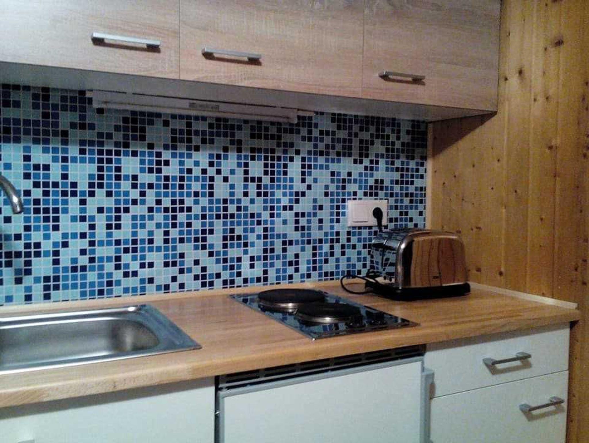 Die Küche ist mit zwei Kochplatten, Spüle, Kühlschrank mit Gefrierfach und ausreichend Geschirr, Besteck und Töpfen ausgestattet. Es stehen Ihnen außerdem eine Kaffeemaschine, ein Toaster und ein Wasserkocher zur Verfügung.