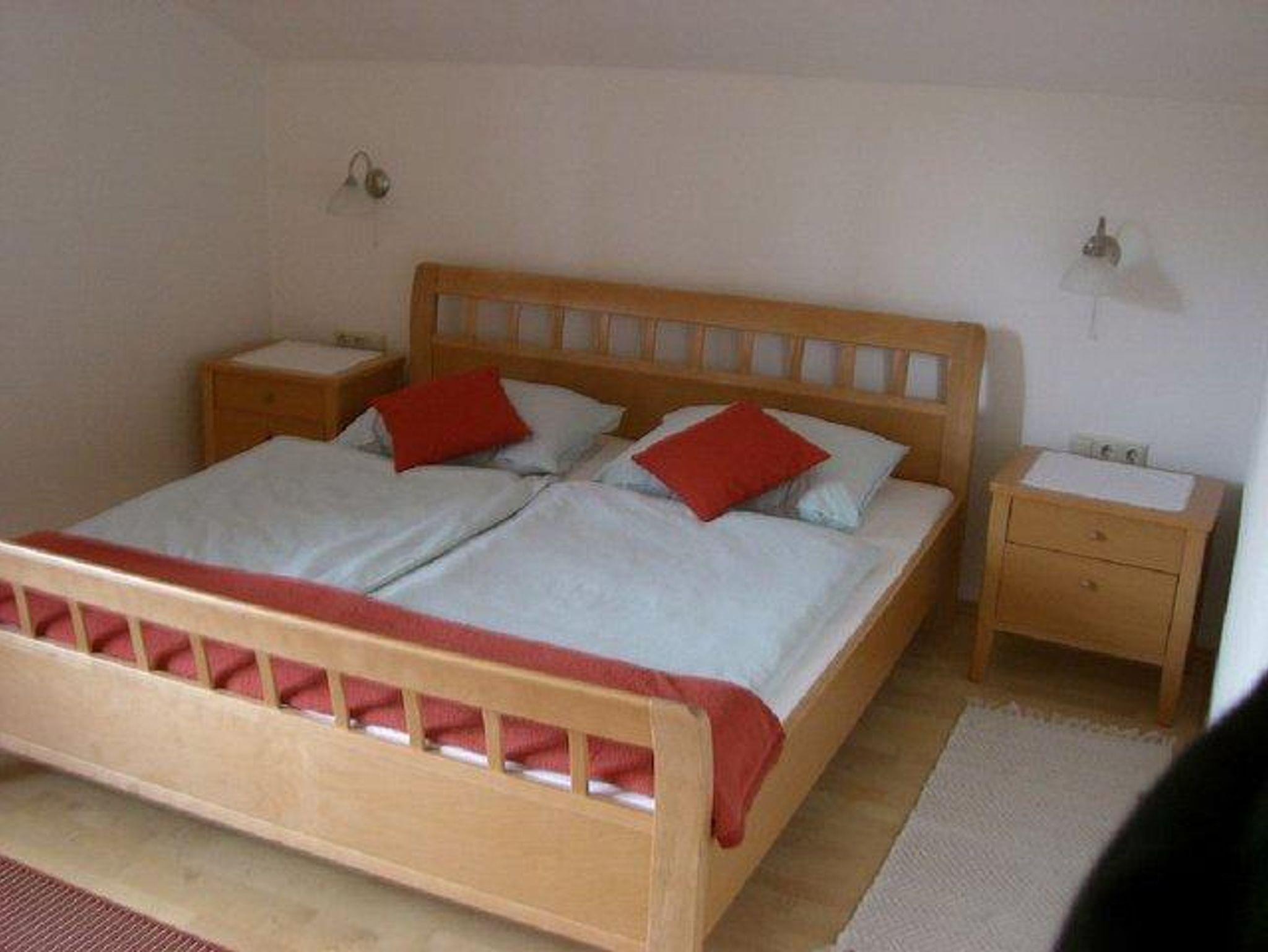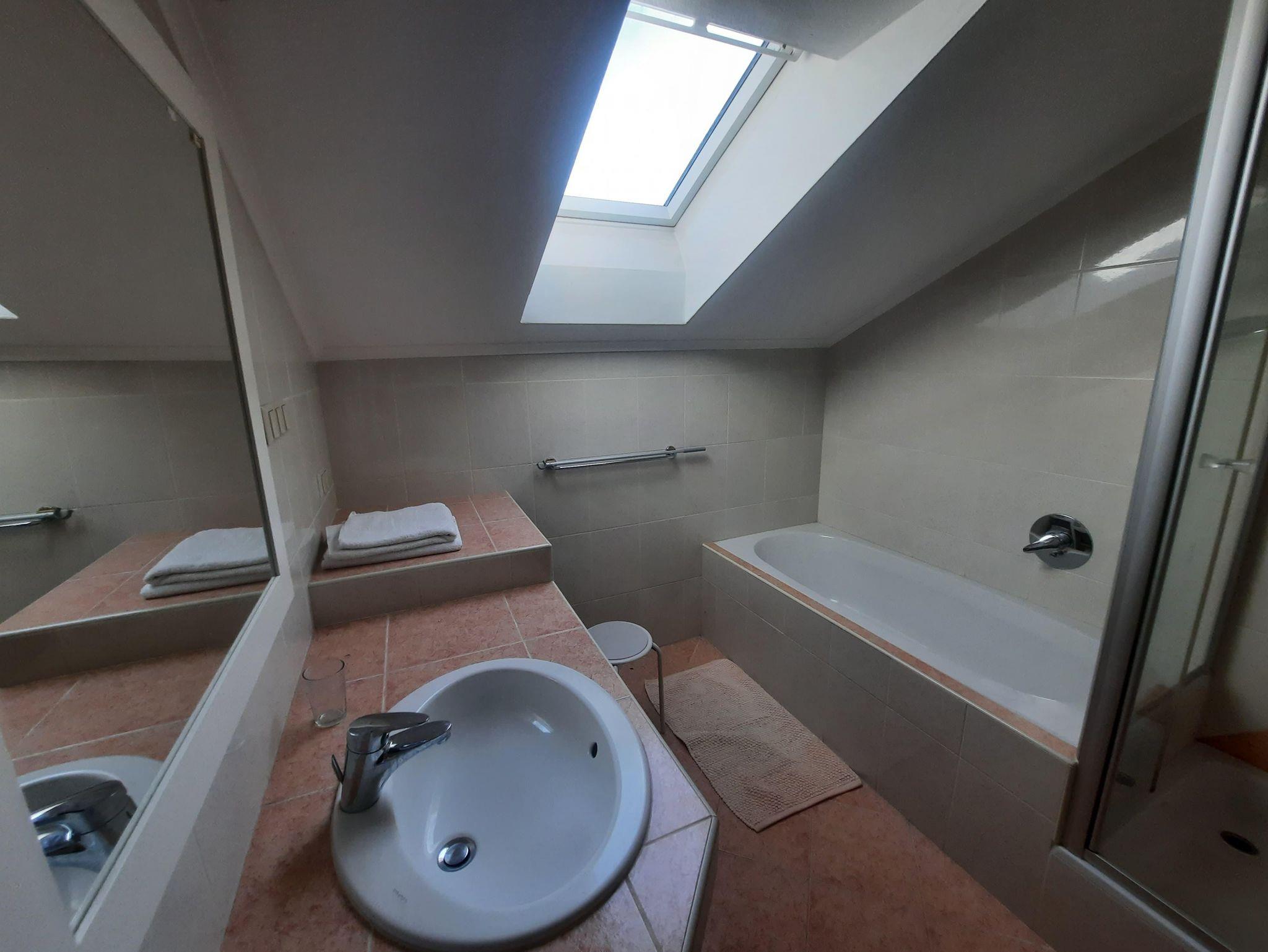 Zwei charmant eingerichtete Schlafzimmer bieten Platz für bis zu fünf Personen: Eines mit einem komfortablen Doppelbett und ein weiteres mit einem Doppelbett und einem Einzelbett. Das Badezimmer mit Tageslicht ist mit einer Dusche sowie einer Badewanne ausgestattet. Zudem steht Ihnen ein separates WC, ebenfalls mit Fenster, zur Verfügung.