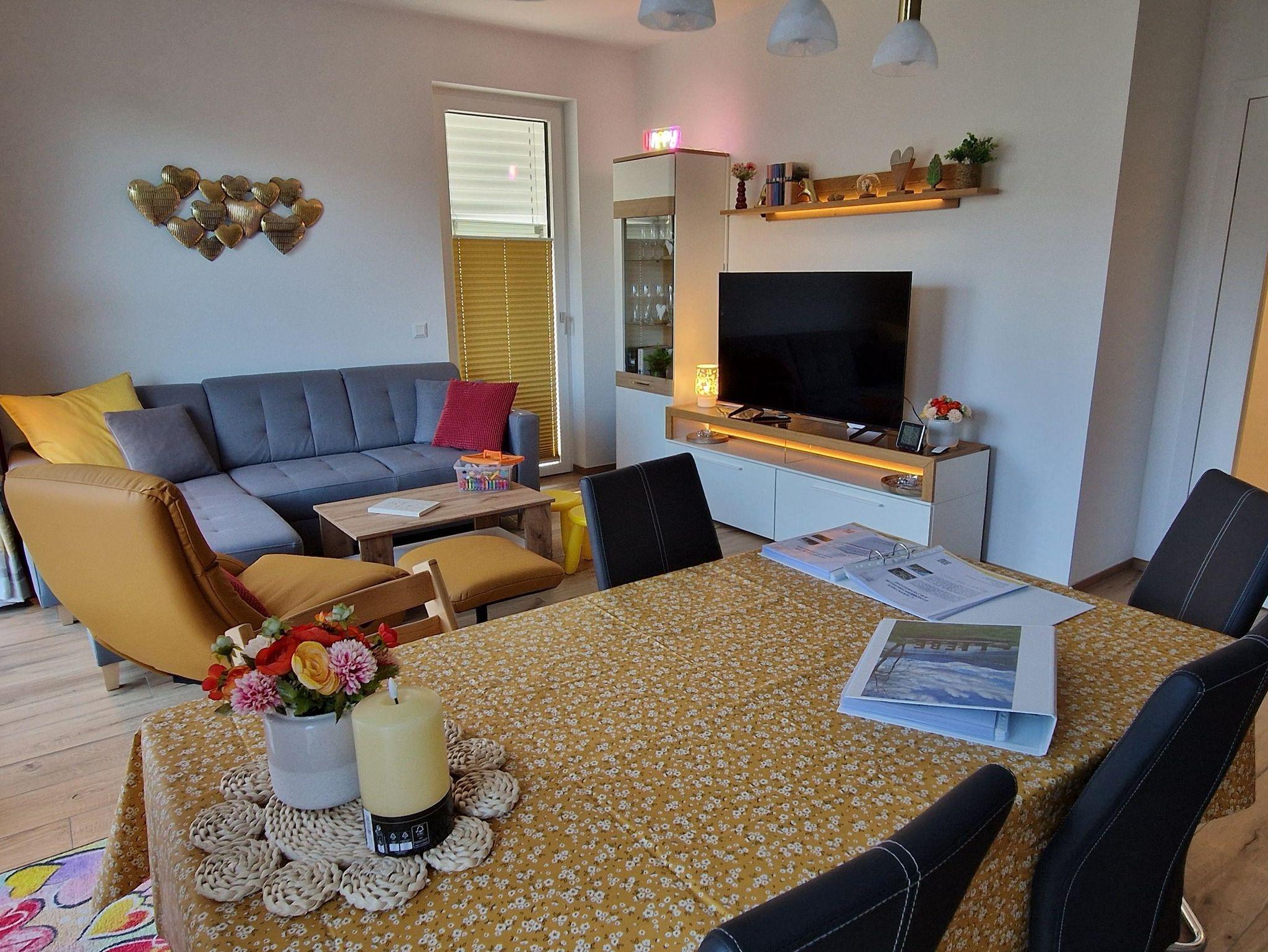 Die 68?m² große Ferienwohnung Kehrwieder bietet Platz für bis zu 6 Personen und eignet sich ideal für Familien. Sie verfügt über zwei Schlafzimmer – eines mit Doppelbett, eines mit zwei Einzelbetten – sowie ein Schlafsofa für zwei Personen im Wohnzimmer. Eine voll ausgestattete Küche, ein Badezimmer, ein separates WC und ein Garten mit Gartenmöbeln runden das Angebot ab.
