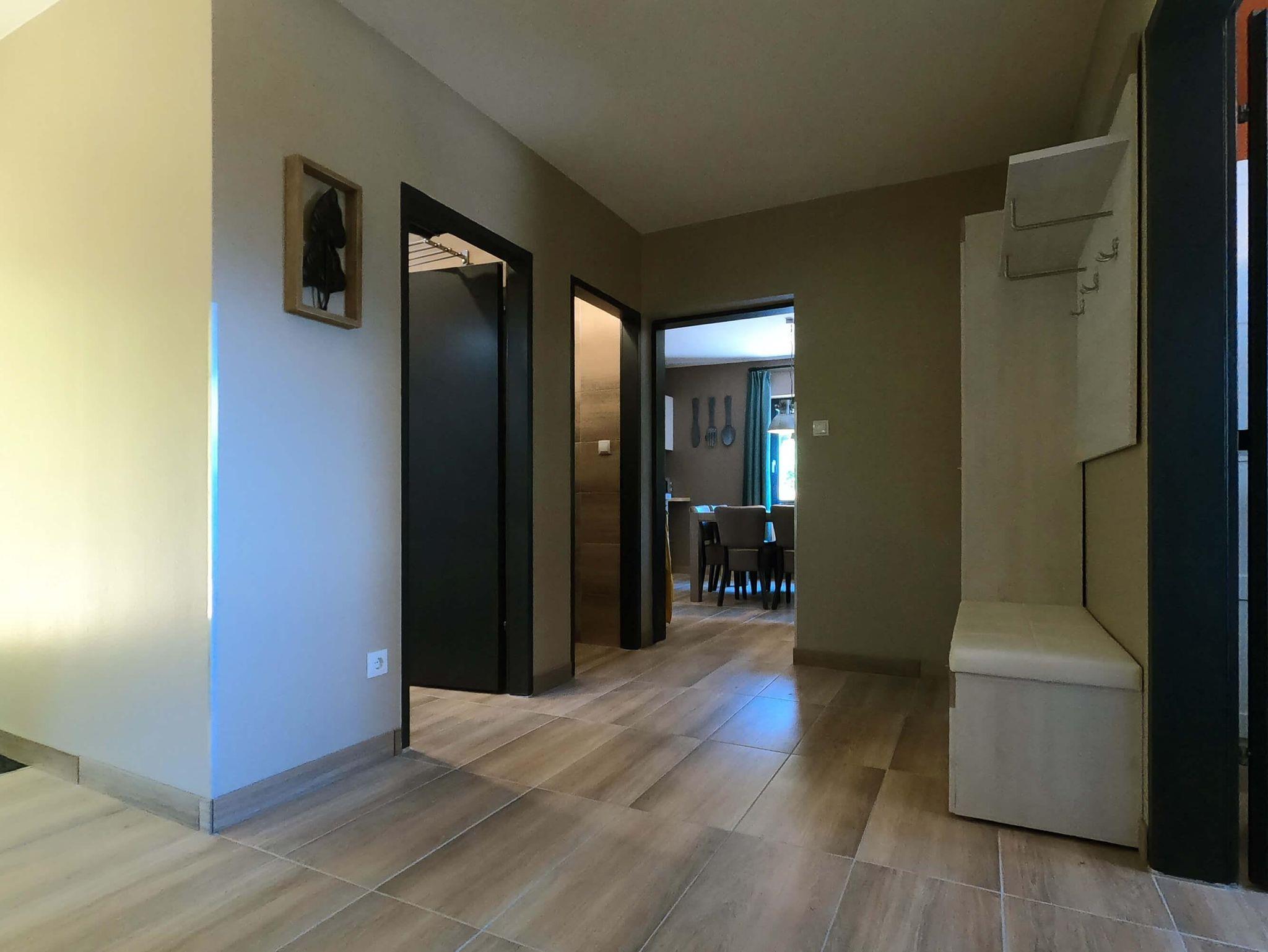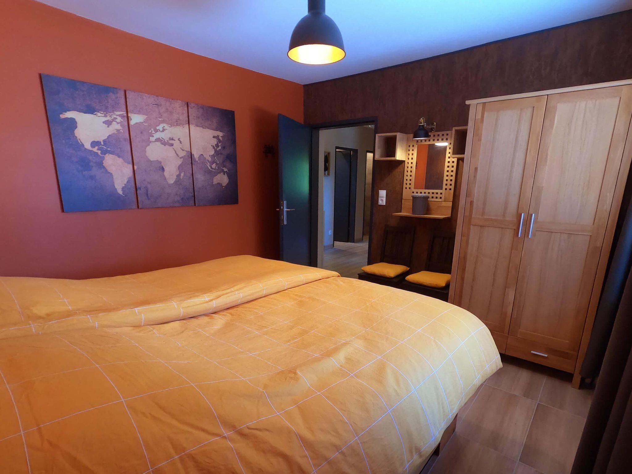 Wohnung bestehend aus: großer, geräumiger Halle mit Garderobe, großem Wohnzimmer mit offener (Wohn-)Küche. Die Küche ist ausgestattet mit: Glaskeramikkochfeld, Backofen, Mikrowelle, Geschirrspüler, Wasserkocher, Kaffeemaschine, Spüle mit fließendem kaltem und warmem Wasser, Besteck, Pfannen und allen anderen Küchengegenständen. 3 Schlafzimmer für maximal 5 Personen. 1 Schlafzimmer mit einem großen Doppelbett (180x200), 1 Schlafzimmer mit 2 Einzelbetten (90x200) und 1 Schlafzimmer mit 1 Einzelbett (90x200) für 1 Person/Kind. Badezimmer mit Walk-in Dusche, Waschbecken mit fließendem kaltem und warmem Wasser. Getrennte Toilette. Die freistehende Wohnung befindet sich im Erdgeschoss und ist über eine kleine Treppe mit 3 Stufen vom Straßenniveau aus zugänglich. Parkplätze stehen kostenlos zur Verfügung. Außerdem können Sie den großen Innenhofgarten mit Terrasse und Spielplatz in unserem angrenzenden Pensiongebäude nutzen.
