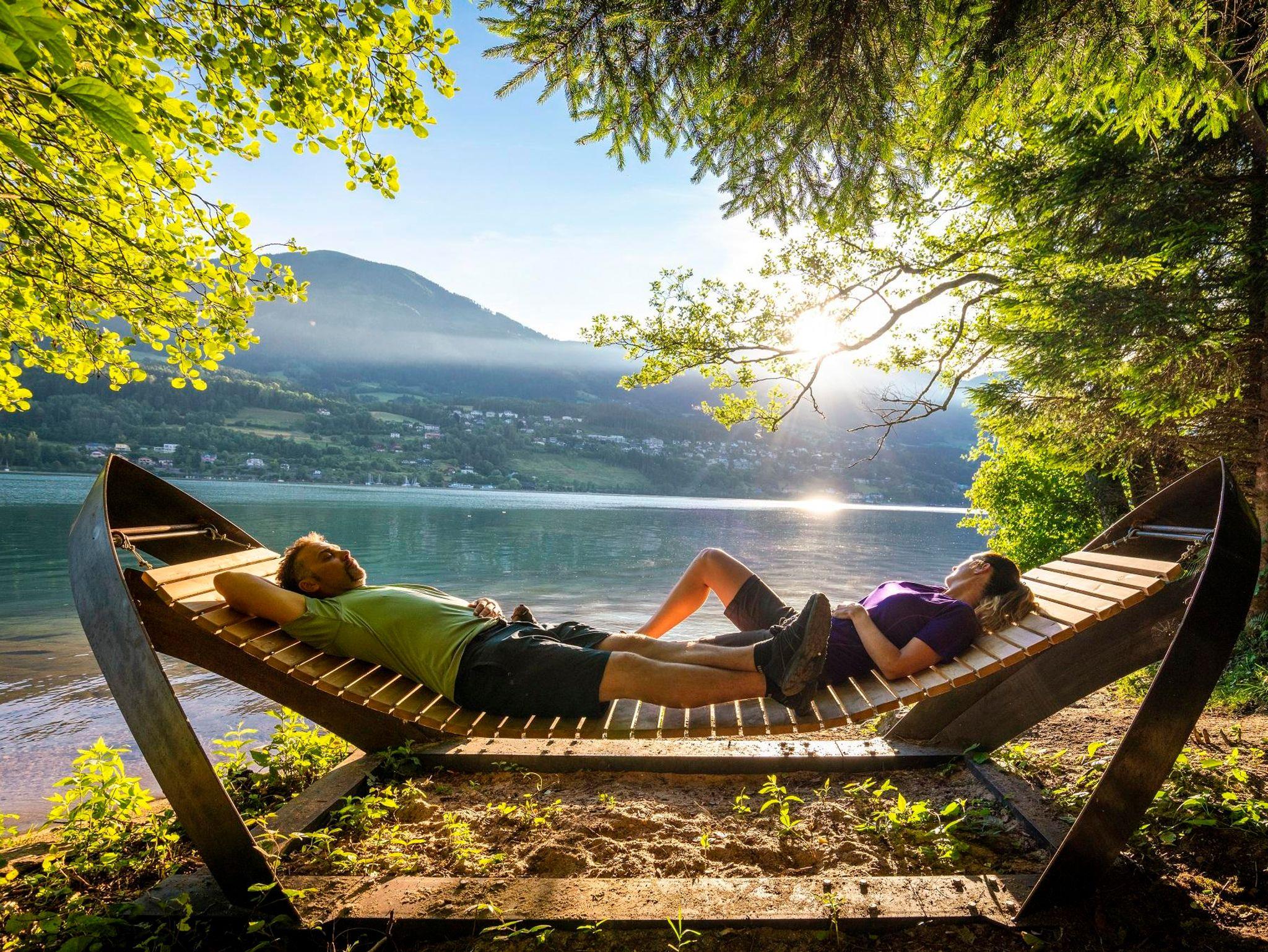 Von der Villa Jamnig in 28 Kilometern rund um den See: Viele Buchten aber auch die Bank im Millstätter See laden zum Picknicken ein und gleich nebenan empfiehlt sich ein wohltuendes Bad im moorhaltigen Nass des Egelsees.