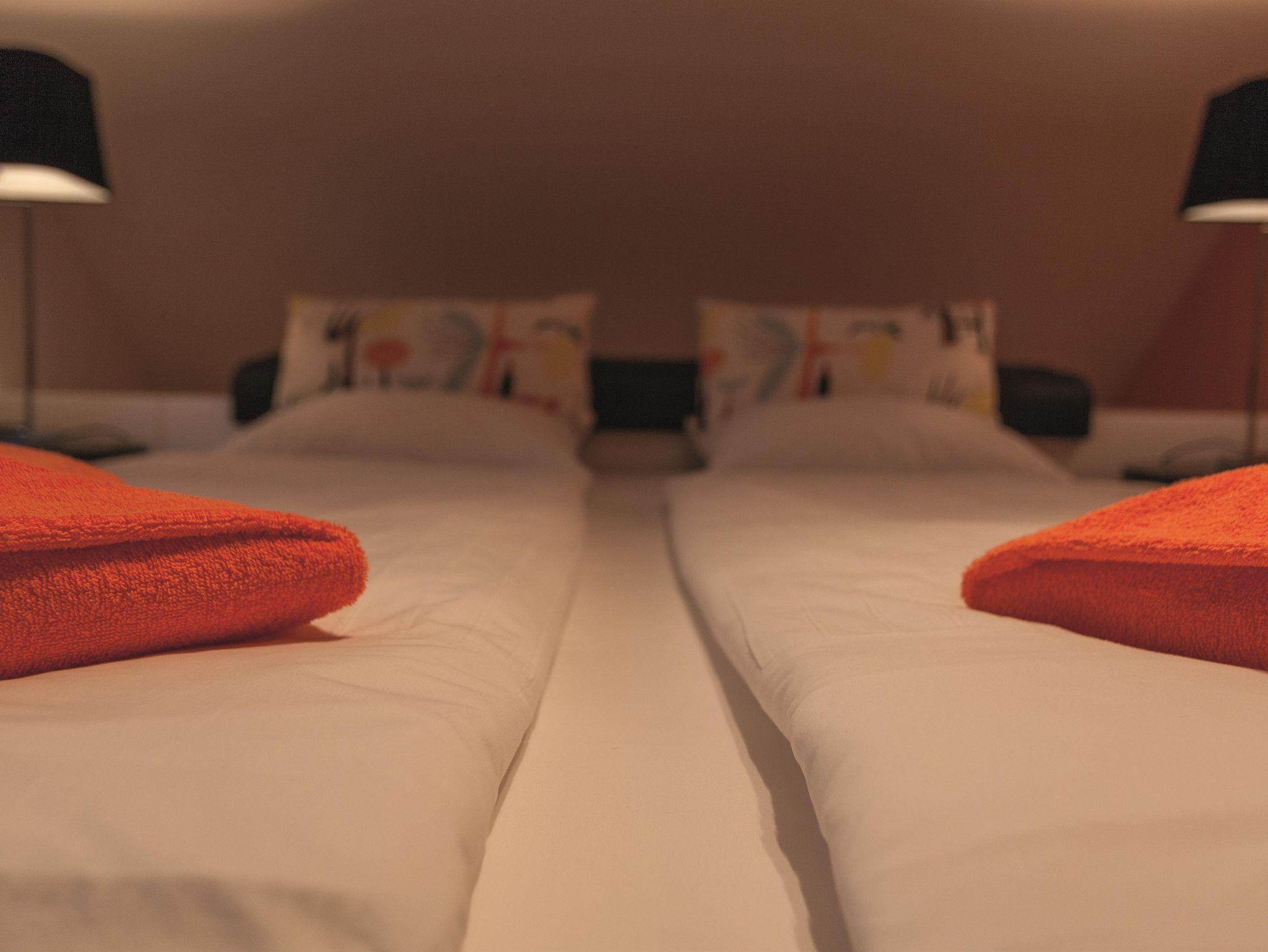 Im 3. Stock bietet das Studio-Apartment 3 auf 35 m² Platz für bis zu vier Personen. Es verfügt über ein Doppelbett und ein Schlafsofa sowie eine kleine Küchenzeile und einen Essbereich. Außerdem gehört ein kleiner Balkon und ein privates Badezimmer zur Ausstattung.
