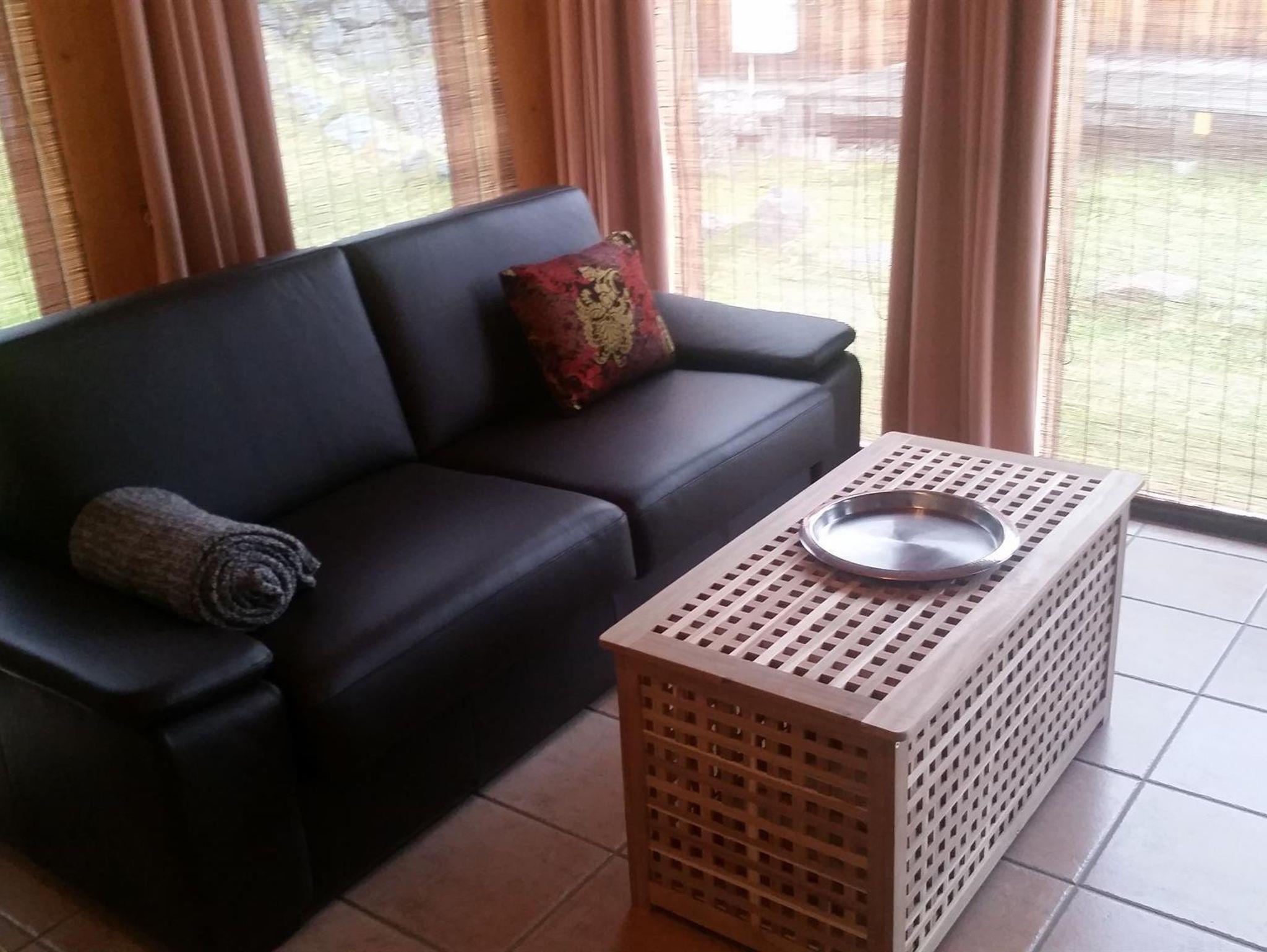 Die Ausstattung des Ferienchalets ist modern und auf gehobenen Niveau. Eine vollständig ausgestattete Küche mit Herd und einem Ceranfeld, Edelstahl-Dunstabzughaube, Kühl- und Gefrierschrank, Mikrowelle und eine Kaffeemaschine ermöglichen Ihnen die eigene Versorgung zu übernehmen. Das Chalet verfügt über zwei Bäder, eines mit Badewanne, eines mit Dusche und eine geräumige hauseigene Sauna. Im Obergeschoss stehen drei Schlafzimmer mit insgesamt acht Betten zur Verfügung. Im ersten Schlafzimmer steht ein Doppelbett, in dem anderen ein Doppel- und ein Einzelbett und im dritten Schlafzimmer steht ein Stockbett und ein Einzelbett. Alle Betten haben Standardgröße. Der Wohnbereich ist mit einer bequemen Couchgarnitur ausgestattet und wird durch einen modernen Flatscreen und eine hochwertige Stereoanlage ergänzt. Der Gasofen hat ein Schauglas, damit man die Flamme sehen kann. Für wohlige Wärme sorgt in den Bädern, im Wintergarten und im Wohn- und Essbereich eine Fußbodenheizung. Die Basiswärme erzeugt der im Wohn-/Essbereich vorhandene Kaminofen, der mit Gas betrieben wird. In den Schlafräumen steht zur Unterstützung eine Elektroheizung zur Verfügung.