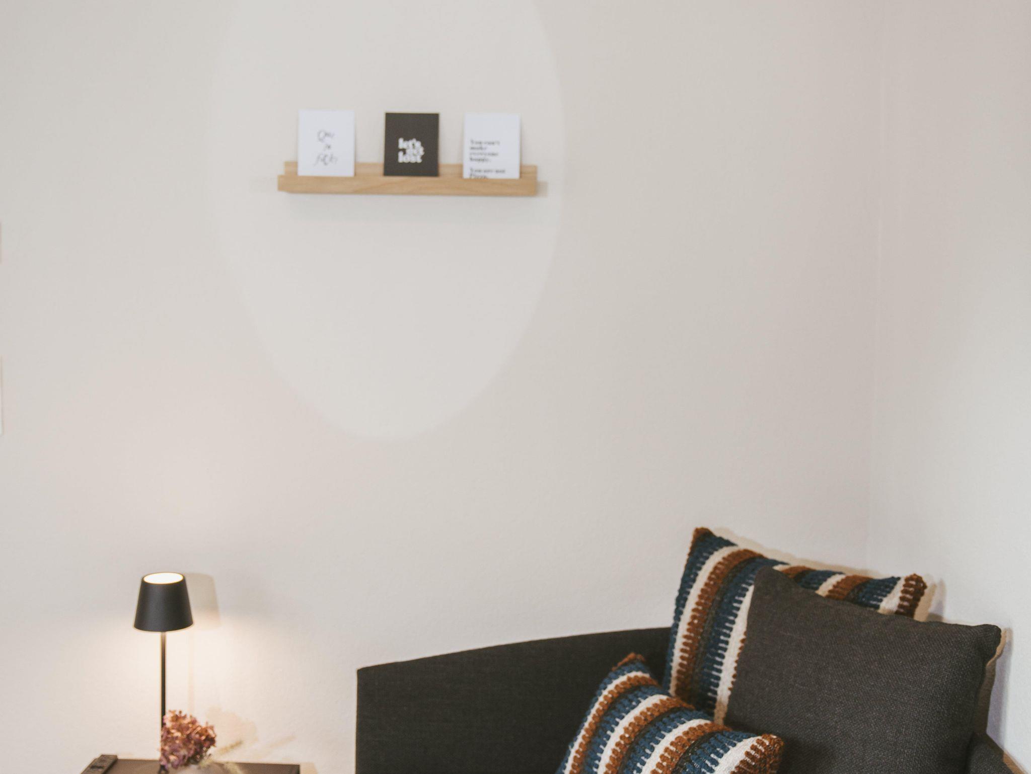 Das Apartment Franz befindet sich im ersten Stock des Nebenhauses und bietet Platz für bis zu drei Personen. Zwei Erwachsene schlafen im separaten Schlafzimmer mit Doppelbett, eine dritte Person auf der gemütlichen Couch im Wohnbereich.