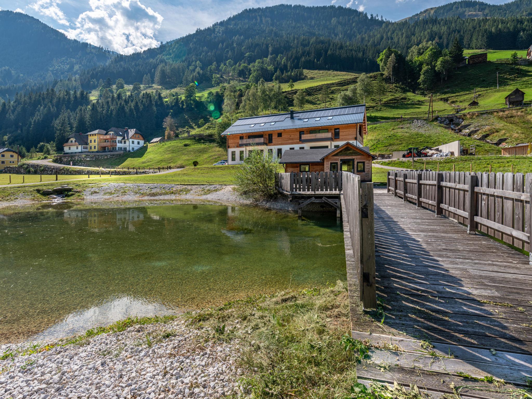 Wellness area opening hours: Daily from 08:00h-19:30h. Comfortable apartment block "Deluxe Bartl". 2 apartments in the residence. In the district of Hinterwald 11 km from the centre of Stein an der Enns, in a quiet, sunny position, 10 km from the lake. For shared use: natural state property. Patio, barbecue. Private: property. In the house: WiFi, sauna, hot tub (all included), spa area. Parking at the house. Grocery 11 km, restaurant 3 km, bakery 11 km, café 11 km, bus stop "Stein an der Enns" 10 km, railway station "Stein an der Enns" 11 km. Nearby attractions: Zipline Stoderzinken Gröbming 18 km. Well-known ski regions can easily be reached: Hauser Kaibling 22 km, Ski Galsterberg 20 km, Planai Schladming 30 km. Well-known lakes can easily be reached: Schwarzensee 8 km. Hiking paths: Schwarzensee-Alm 8 km.
