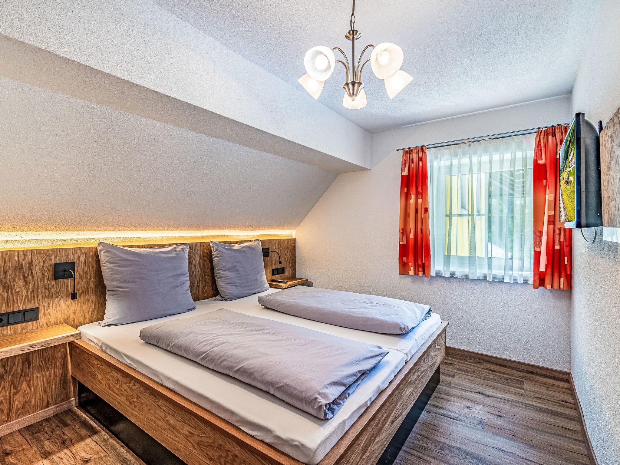 "Karlspitz", 4-room apartment 90 m2, on the top floor. Cosy furnishings: living/dining room with dining table, satellite TV and international TV channels (flat screen), electric heating. Exit to the balcony. 3 double bedrooms with sloping ceilings, each room with satellite TV and international TV channels (flat screen). Open kitchen (oven, dishwasher, 4 ceramic glass hob hotplates, kettle, microwave, electric coffee machine). Shower, sep. WC, double hand-basin. Electric heating. Parquet floors. Large balcony. Balcony furniture. Beautiful panoramic view of the mountains. Facilities: Internet (WiFi, free). Please note: non-smokers only. Maximum 1 pet/ dog allowed.