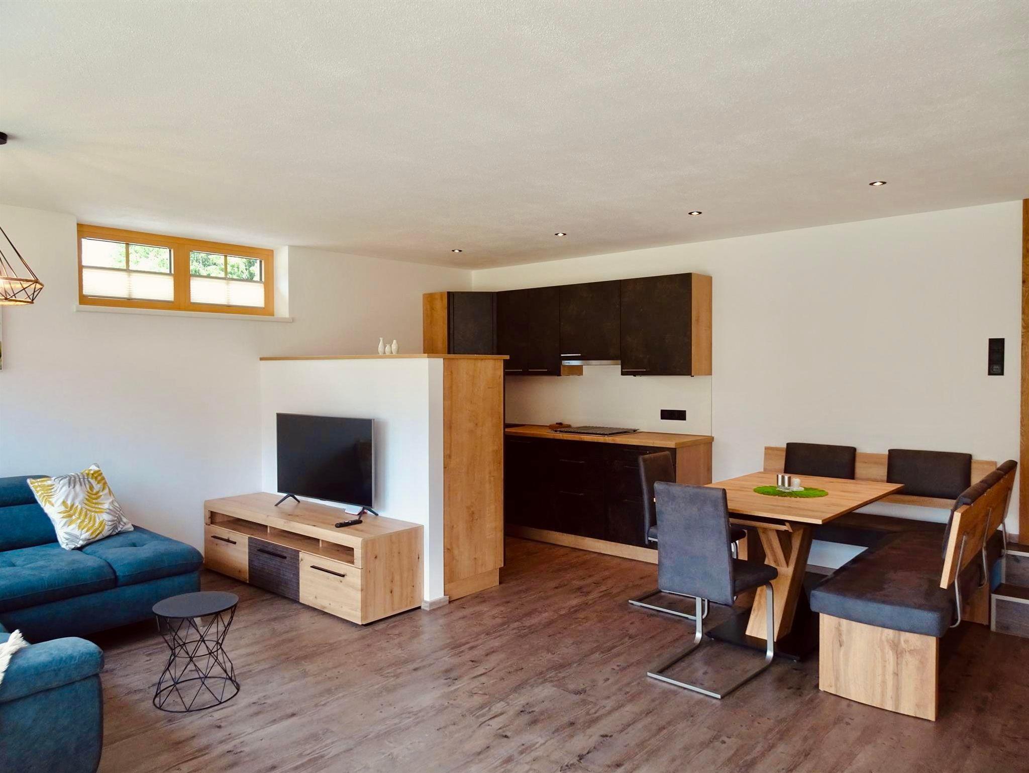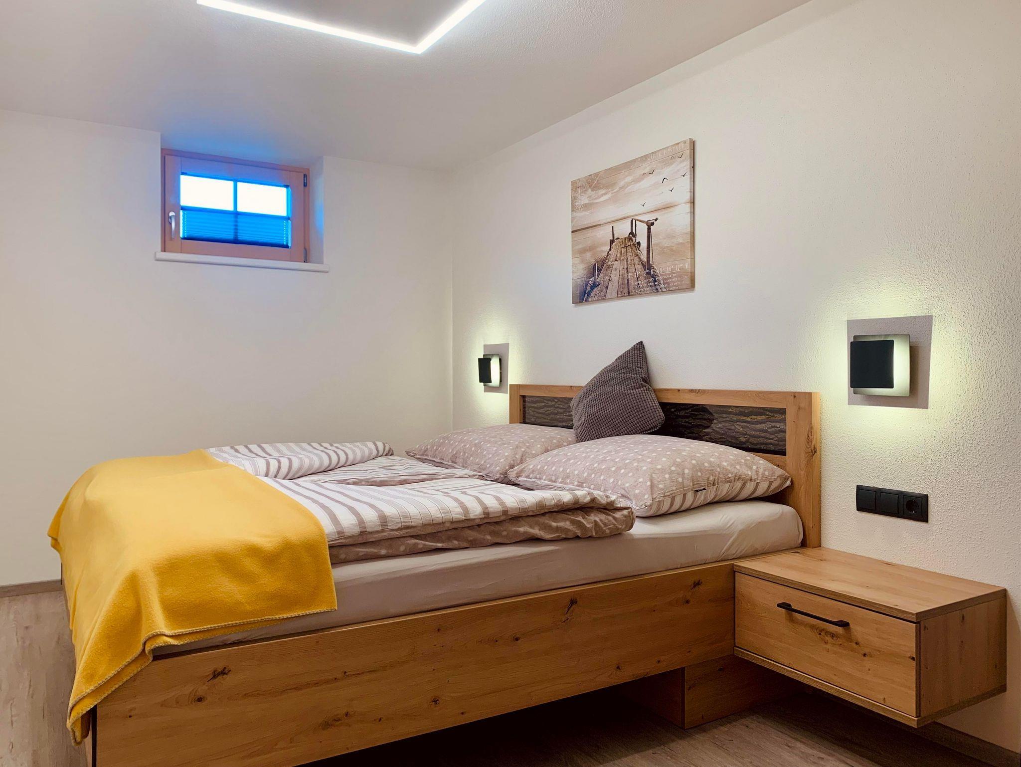 Das moderne und freundliche Apartment bietet auf 70m² Platz für bis zu 6 Personen. Die Sonnenterrasse verfügt über Sitzgelegenheiten, einem Tisch, einem Grill sowie Liegestühle mit Decken für entspannte Tage. Im Eingangsbereich befindet sich ein Vorraum mit Garderobe. Im großen Wohnraum mit Fensterfront und Terrassentür lässt sich die Aussicht wunderbar genießen. Darin findet sich die gemütliche Doppel-Schlafcouch, eine vollausgestattete Küche und der ausziehbare Esstisch mit Eckbank. Durch die Fernsehwand ergibt sich eine perfekte Raumaufteilung. Das Wi-Fi, Spiele und diverse Bücher dürfen natürlich auch nicht fehlen. Durch den Flur gelangt man zu den zwei seperaten Schlafzimmern welche für jeweils 2 Personen ausgestattet sind (Doppelbett und Französisches Bett), sowie zum Badezimmer mit Dusche und WC. Es gibt auch eine Einstellmöglichkeit für Fahrräder und Ski/Snowboards.