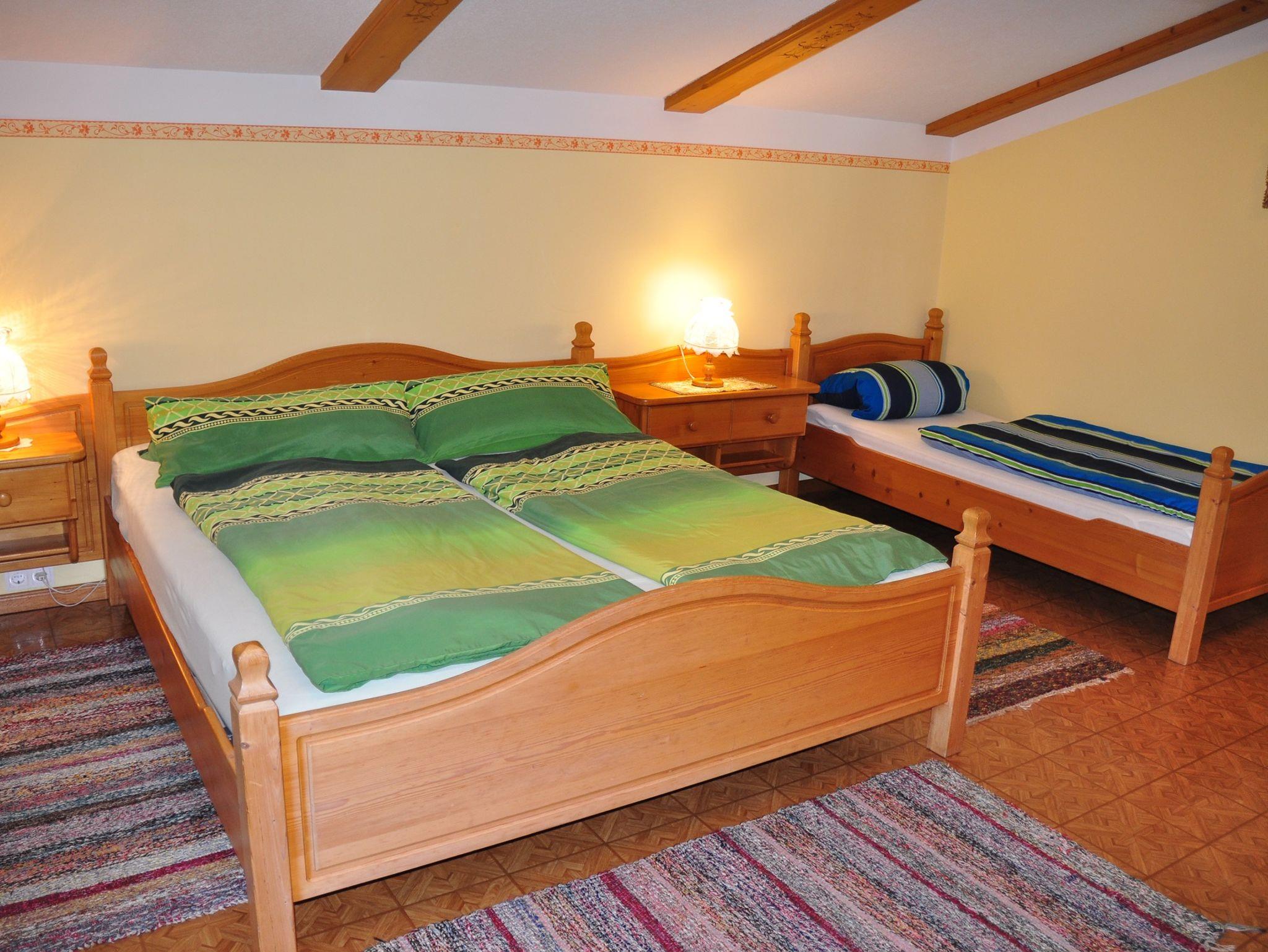 Die Wohnung verfügt über ein Schlafzimmer mit einem Doppelbett und einem Einzelbett sowie über ein Wohn- Schlafraum mit einem Sitzbereich und zwei Schlafsofas. In der Ferienwohnung ist ein Sat-TV mit Flachbildschirm, WLAN, Radio und ein Kachelofen vorhanden.