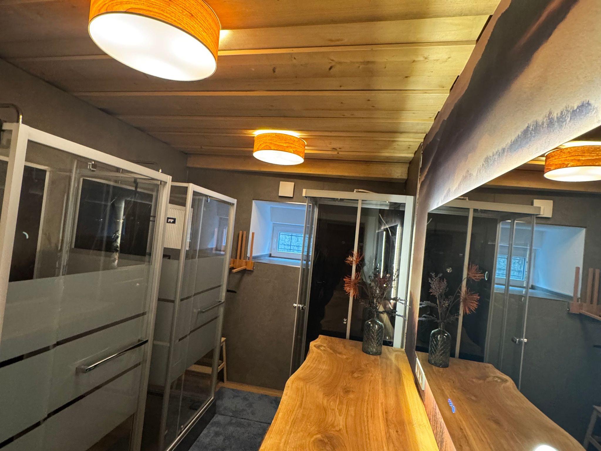 In der kalten Jahreszeit sorgen eine Infrarotsauna (1.OG) und ein Pelletofen (im Aufenthaltsraum) für euer Wohlbefinden.