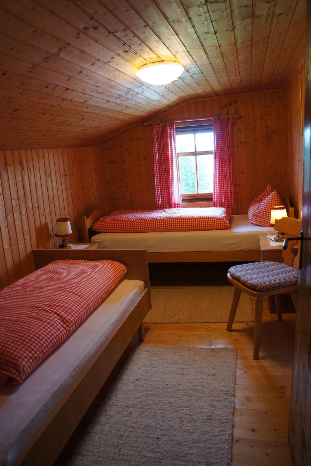 The rooms of the flat are divided into 1 double room with a large double bed, 2 twin rooms each with two single beds, 1 cosy living room with corner bench, table and wood-burning stove, 1 spacious and well-equipped kitchen and 1 bathroom with shower, WC and hairdryer.