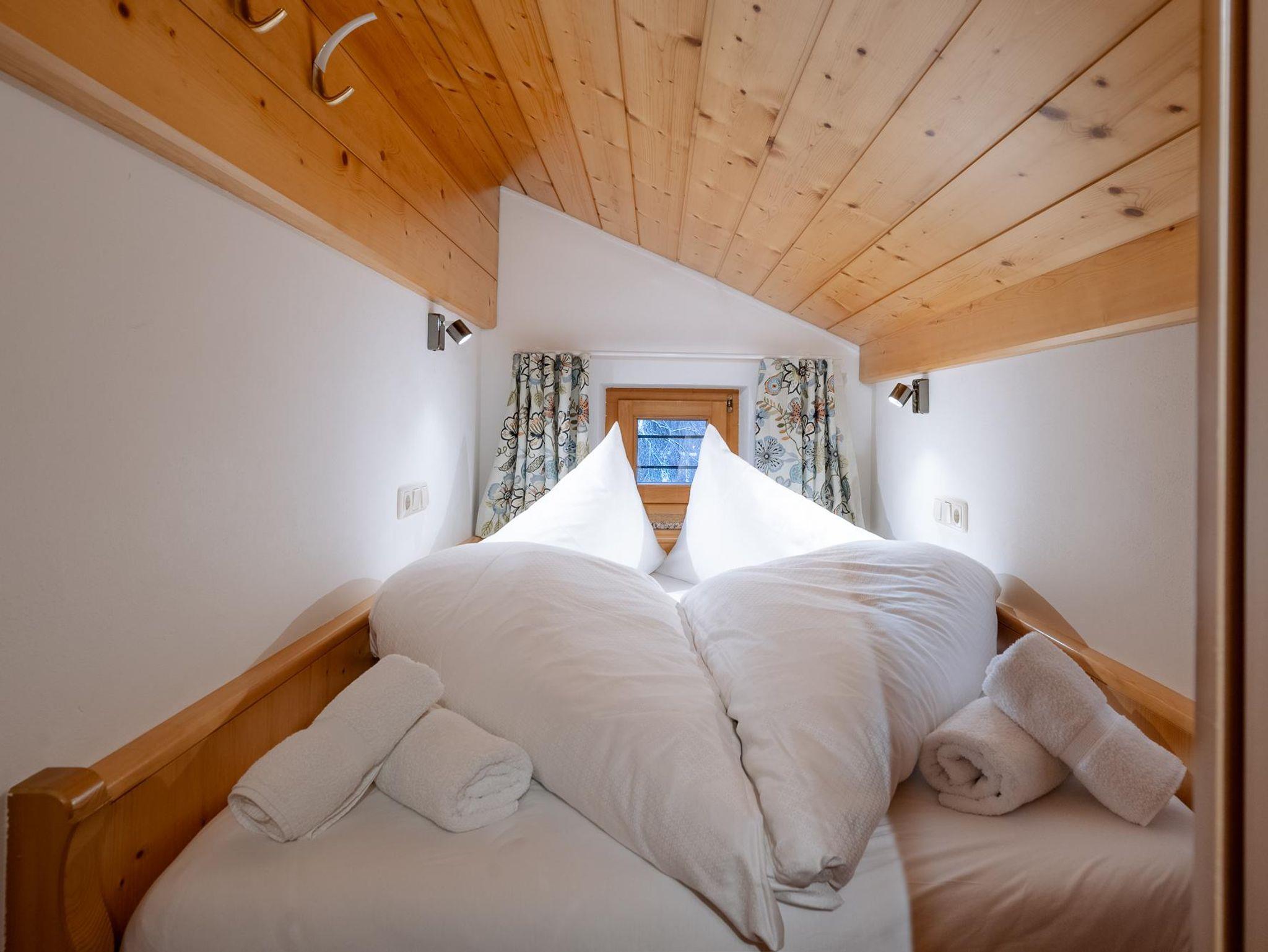53 m2 im Dachgeschoss, Süd-Westlage, bestehend aus einer großzügigen Wohnküche mit Sitzecke, einem Schlafzimmer mit Doppelbett aus Zirbenholz und einem Einzelbett aus Zirbenholz und einer Schlafkammer (Dachschräge) mit einem Doppelbett (140 x 190 cm), einem Bad mit Dusche, separatem WC und einem Balkon zur Südseite