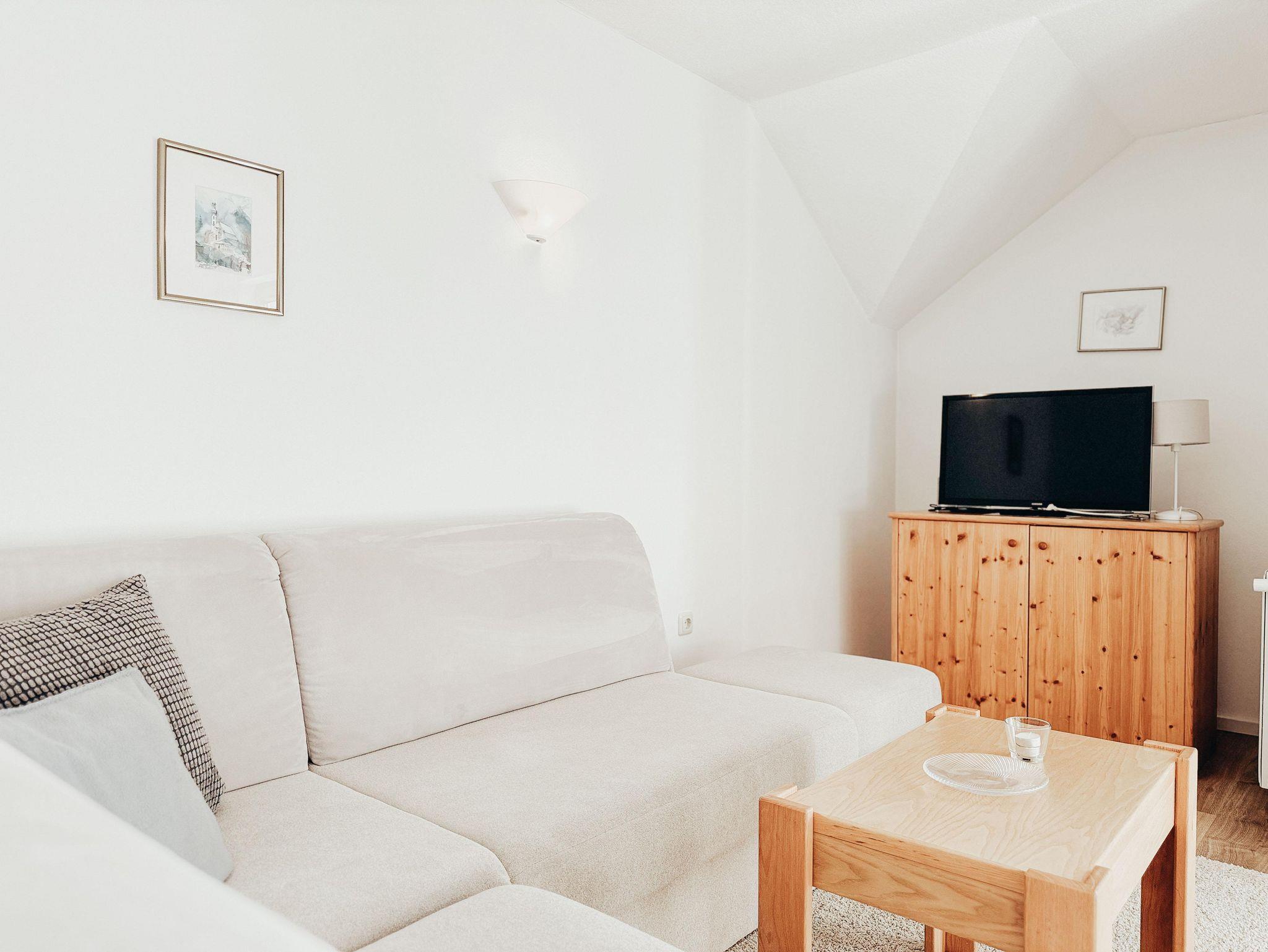 Das 62m2 große Apartment quartier Nr. 2 ist hell und freundlich eingerichtet, hat einen Wohn-/Ess- und Kochbereich mit hochwertiger Eckcouch, Zugang zum Sonnenbalkon und einen wunderbarem Blick auf die Mittagspitze. Vom Vorraum aus gelangt man in des geräumige Bad mit Dusche/WC, 2 getrennte Schlafzimmer und ein zusätzliches WC mit Handwaschbecken.