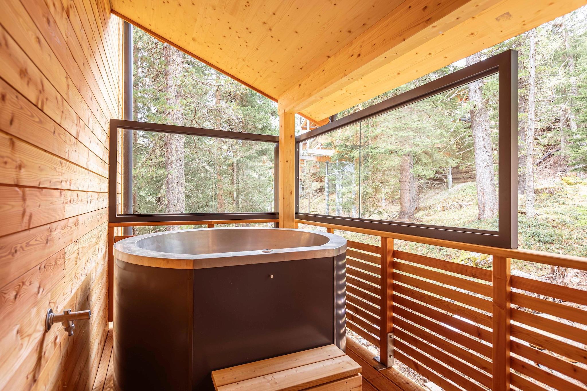 Velkommen til din perfekte alpine ferie i denne smukke hytte i massivt træ, der tilbyder 135 m² gennemtænkt udformet plads på to indbydende etager. Ideel til familier eller grupper, denne chalet kan komfortabelt rumme op til 8 gæster og giver en blanding af rustik charme og moderne bekvemmelighed. Hytten har 4 hyggelige soveværelser, der hver er indrettet med en dobbeltseng, og nogle har private balkoner, hvor du kan nyde den fredelige udsigt over den omkringliggende fyrreskov. Der er 3 badeværelser, heraf 2 med en-suite bruser og et ekstra stort badeværelse med et afslappende badekar. Efter en dag med eventyr kan du slappe af i din private sauna eller nyde spabadet, begge designet til at tilbyde en hyggelig og beroligende afslutning på din dag. Det åbne køkken er fuldt udstyret til at imødekomme alle dine kulinariske behov. Det inkluderer en keramisk kogeplade, ovn, opvaskemaskine og et køleskab med fryser. Essentielt bestik, køkkengrej og tallerkener leveres sammen med yderligere apparater såsom en brødrister, elkedel og kaffemaskine. For at gøre din ankomst lettere, vil der være et lille startsæt med opvaskemaskinefaner, opvaskemiddel (prøve), svamp, affaldssække, rengøringsmidler og et viskestykke til rådighed. Hold forbindelsen med gratis Wi-Fi under hele dit ophold. Beliggende i den fredfyldte fyrreskov Turracher Höhe, i cirka 1.800 meters højde, tilbyder denne chalet en fredfyldt flugt med den ekstra luksus af et Butler Card eller Butler-program inkluderet, hvilket sikrer en skræddersyet service til at forbedre dit ophold. Bemærk venligst, at billederne er eksempler på visuals; hver hytte er unikt indrettet for at skabe en personlig oplevelse.