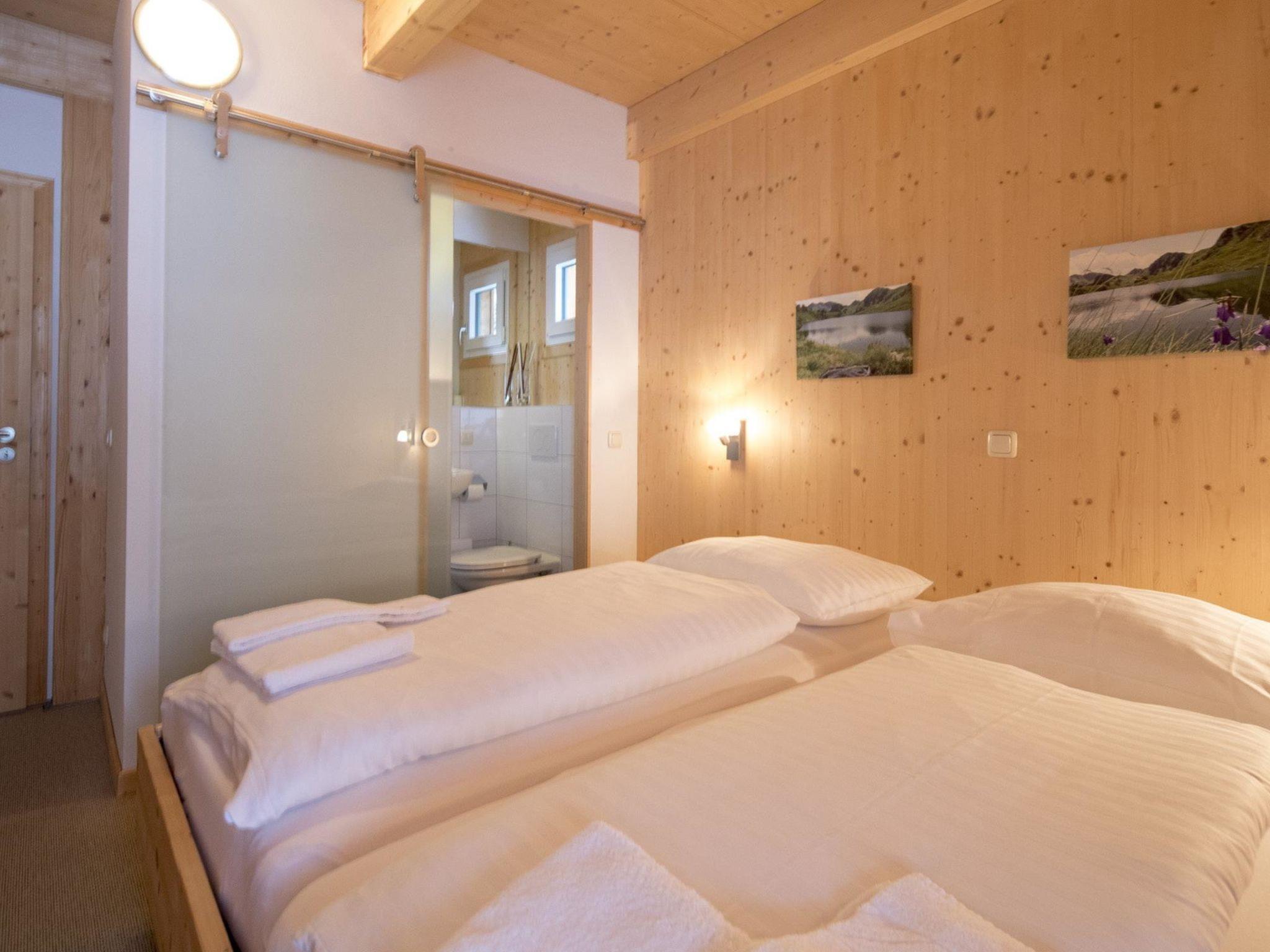 " 21 mit IR-Sauna und Whirlpool", 5-room chalet 120 m2. Luxurious and tasteful furnishings: living/dining room with dining nook and satellite TV (flat screen). Open kitchen (oven, dishwasher, 4 ceramic glass hob hotplates, toaster, kettle, microwave, electric coffee machine). Shower/WC. Upper floor: 3 double bedrooms. 1 double bedroom with 1 bed and 1 x 1 bunk beds. Bath/WC, shower/WC, hydro massage bath, Sauna.