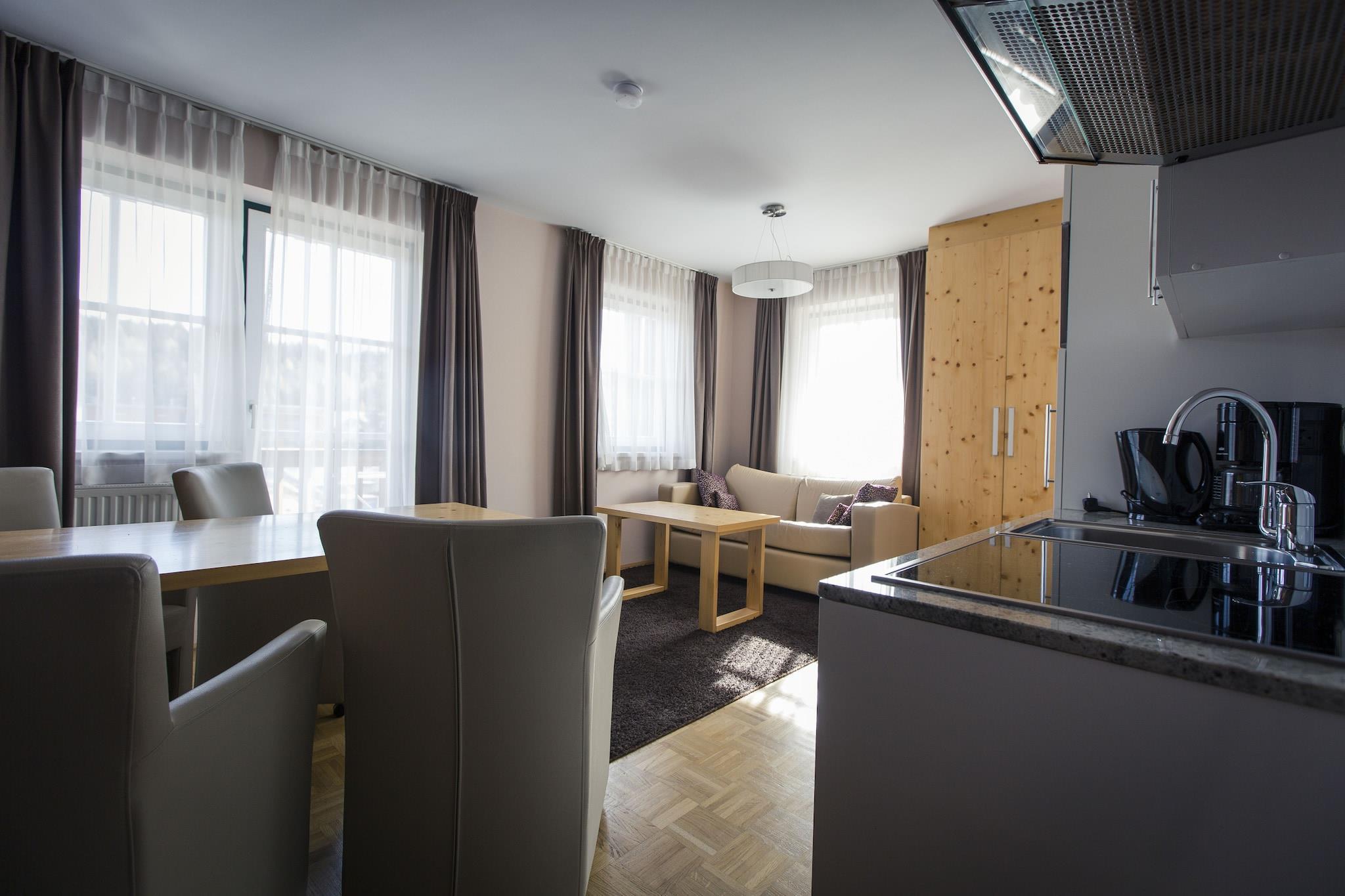 Velkommen til Enzian Apartment, et hyggeligt studie på 25 m² designet til et dejligt bjergretræte for op til 2 gæster. Beliggende i en rolig fyrreskov i en højde af 1.800 meter, tilbyder denne charmerende lejlighed en perfekt blanding af komfort og bekvemmelighed med en betagende alpine udsigt. Lejlighedens beliggenhed giver nem adgang til skiløb, vandreture og gåture, hvilket gør den til en ideel base for både vintersportsentusiaster og naturelskere. Enzian Apartment har et alsidigt sove-opholds-spiseområde, hvor du kan vælge mellem en komfortabel dobbeltseng eller en hyggelig sovealkove med en dobbeltseng. Det velindrettede badeværelse har bruser, og den private balkon giver et dejligt sted at nyde den friske bjergluft og naturskønne omgivelser. Det åbne køkken er fuldt udstyret til at imødekomme alle dine kulinariske behov. Det inkluderer en keramisk kogeplade, ovn, opvaskemaskine og et køleskab med fryser. Vigtige små apparater såsom brødrister, kedel og kaffemaskine er også til rådighed. For at sikre en gnidningsløs start på dit ophold, vil et lille startsæt med opvaskemaskinefaner, opvaskemiddel (prøve), en svamp, affaldssække, rengøringsmidler og et viskestykke være klar ved ankomsten. Hold forbindelsen med gratis Wi-Fi og nyd en række kanaler på satellit-tv. Forbedre dit ophold med vores Butler-kort eller Butler-program, der giver personlig service og enestående assistance under hele dit besøg. Oplev den perfekte kombination af alpin charme og moderne bekvemmeligheder i Enzian Apartment, hvor et hyggeligt og mindeværdigt tilflugtssted venter.
