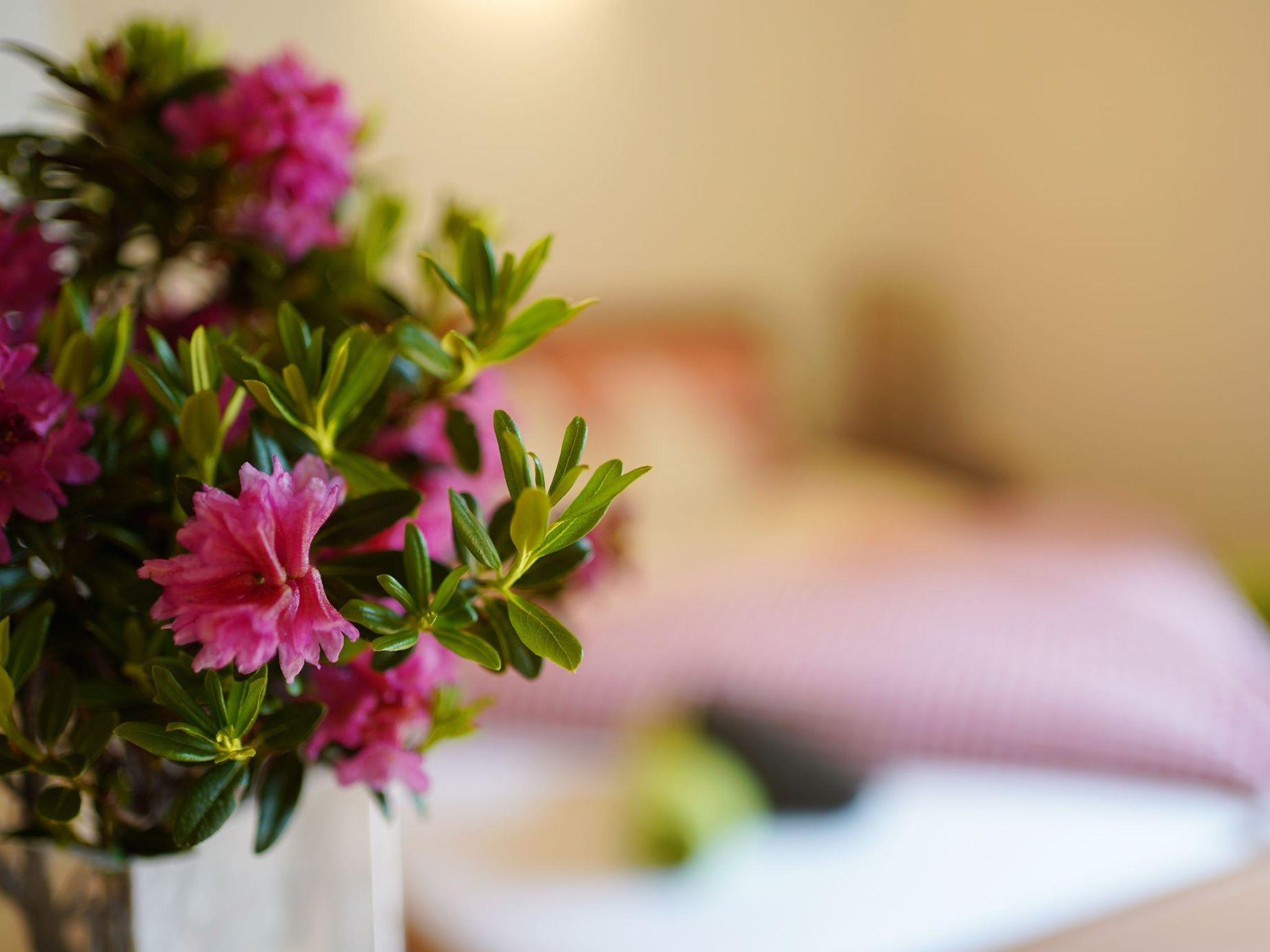 The 38 m² flat has a bedroom with a double bed (180 x 200 cm) and a bathroom with shower and WC. In the new and fully equipped eat-in kitchen with 4-ring hob, oven, dishwasher, fridge, coffee machine and kettle there is a dining table, sofa and flat-screen TV. There are also additional sleeping facilities for two people on two extra beds. Bed linen, crockery and towels are provided.