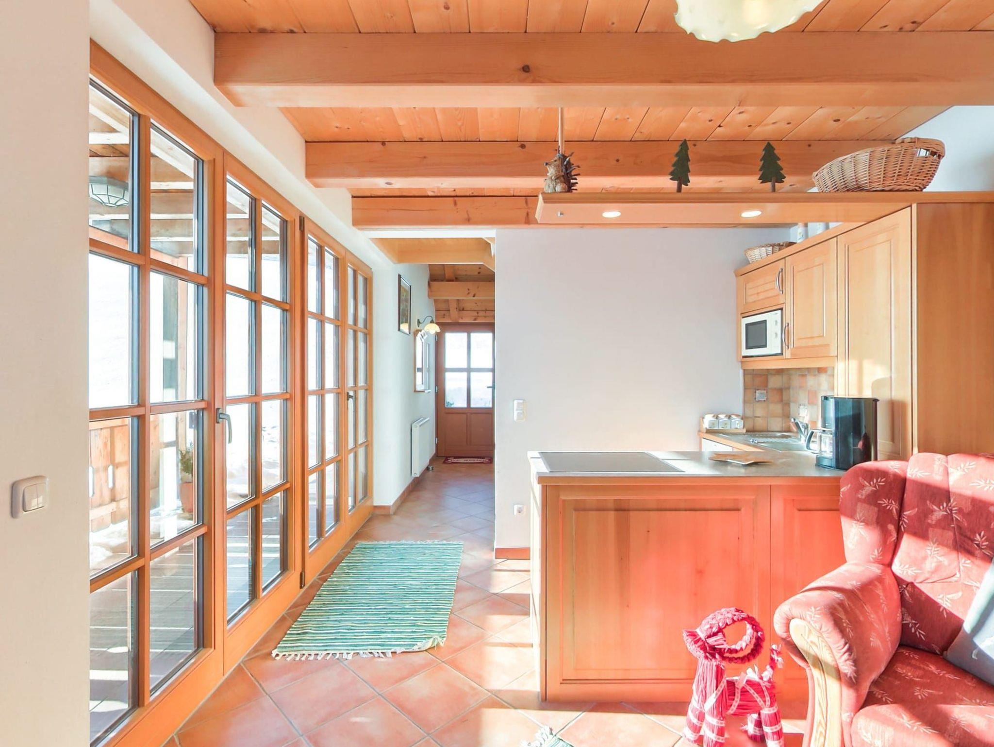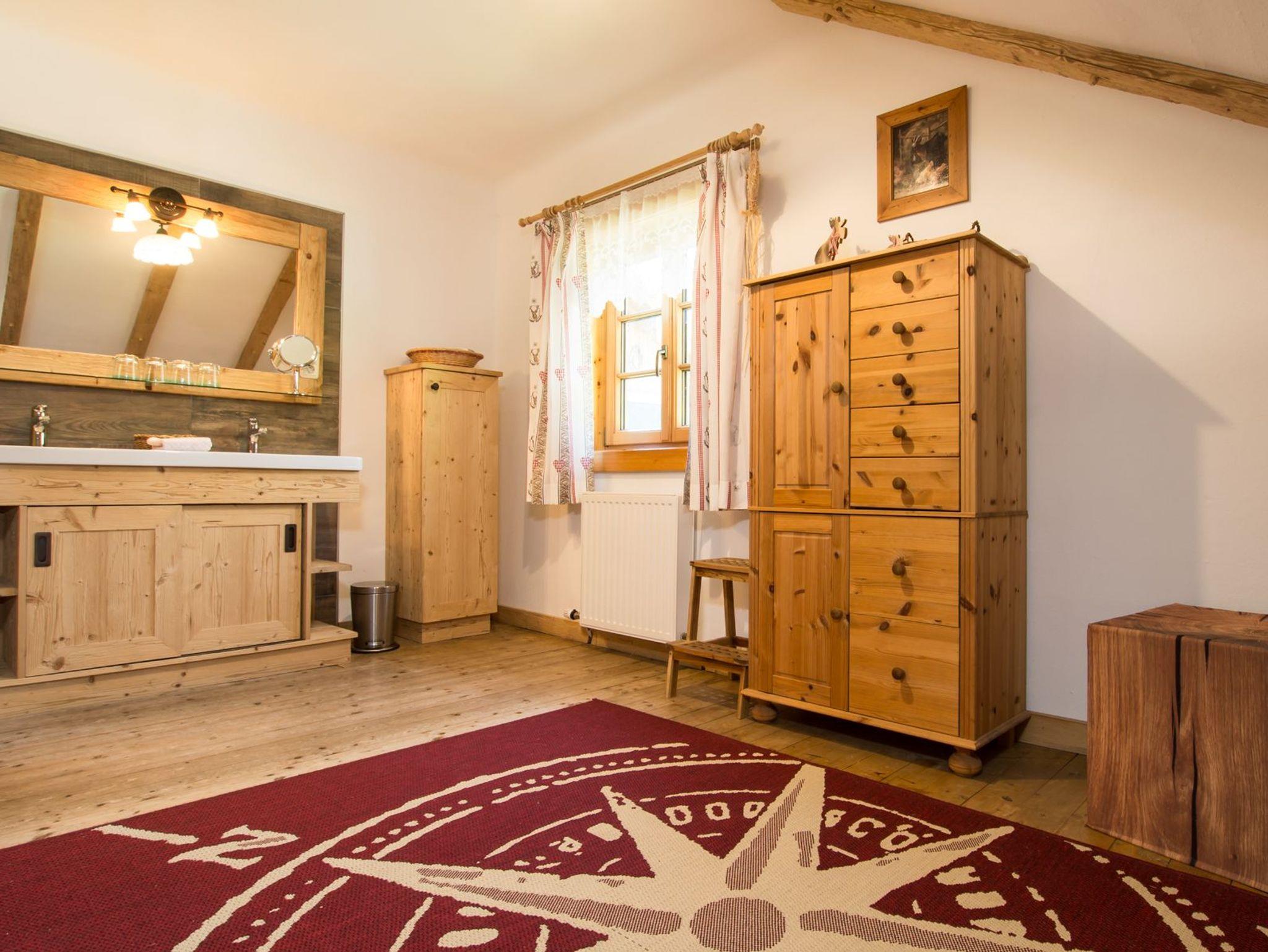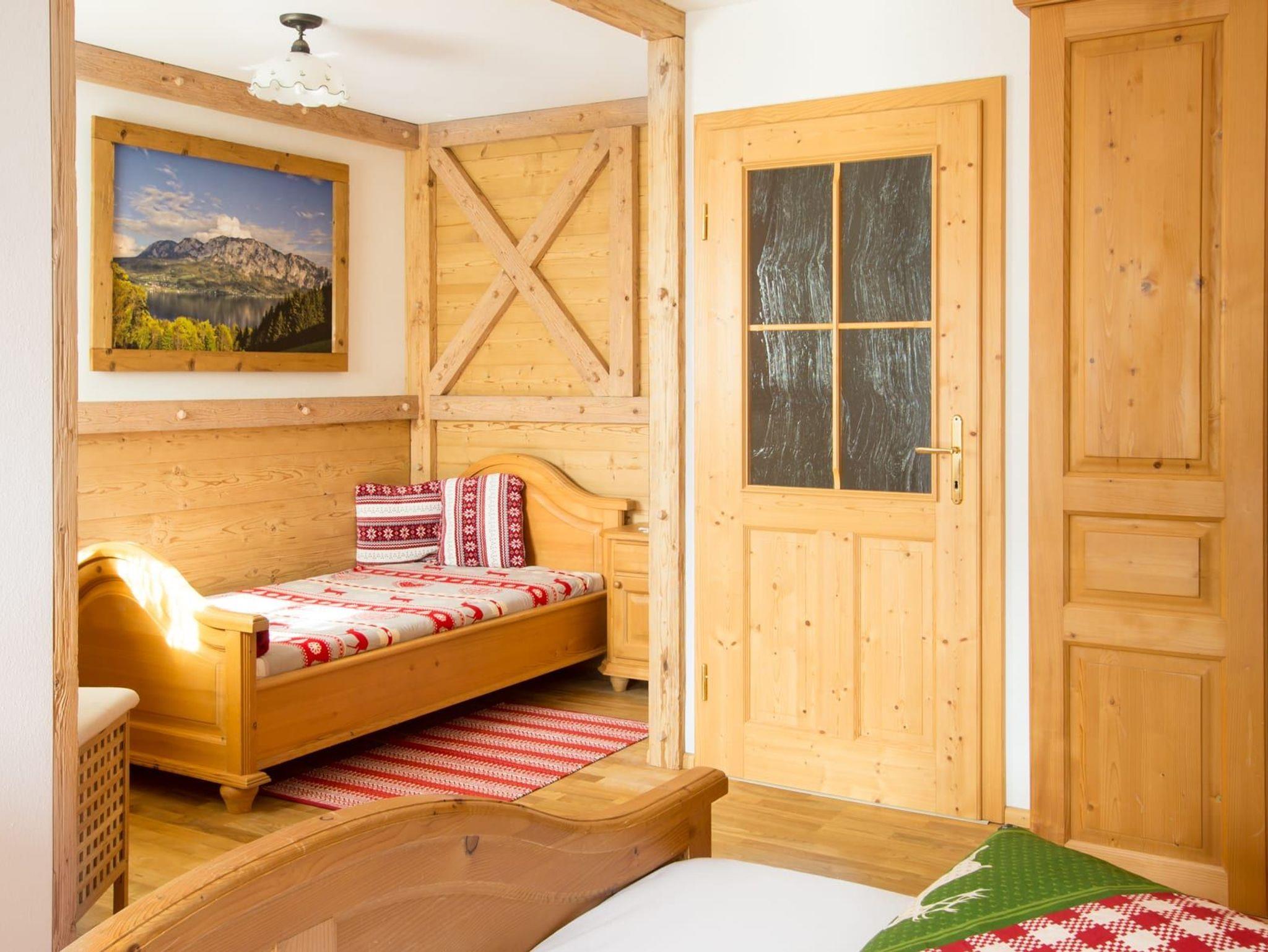 Exklusive urgemütliche in Massivholz eingerichtet Ferienwohnung Schafberg mit Blick zum Attersee für 2 - 3 Personen mit Terrasse, komplett eingerichtete Küche mit Geschirrspüler, Gratis Internet über Wireless LAN oder Kabel, Sat-TV, Flatscreen, WC und Bad und mit 1. Schlafzimmer