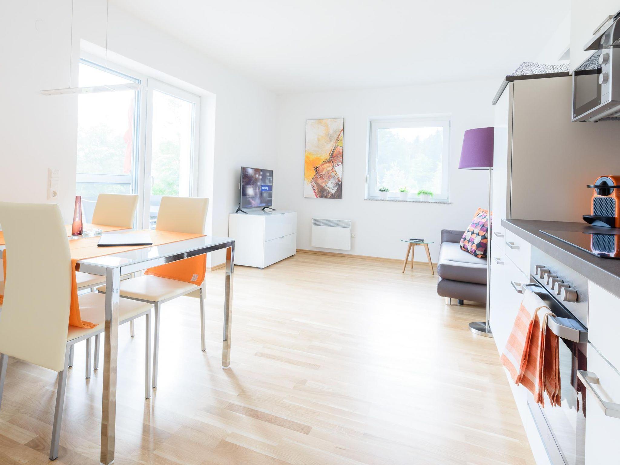 Gemütliches Wohn- und Esszimmer mit großzügiger Schlafcouch (bietet Schlafgelegenheit für bis zu 2 Personen).