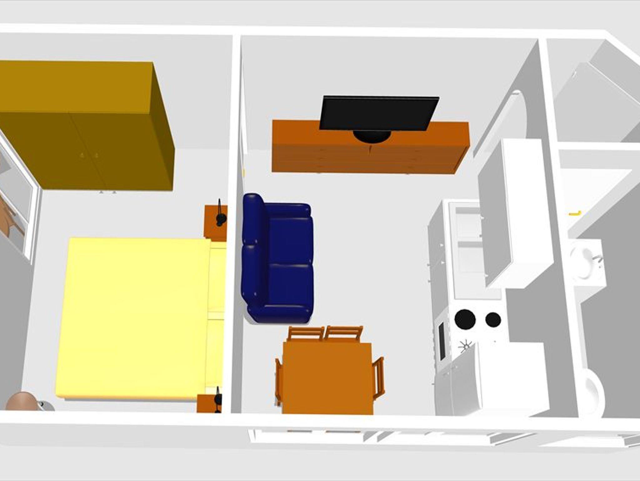 Appartement 1: Elektroherd mit vier Herdplatten, Kühlschrank, Kaffeemaschine, Wasserkocher, extra Vorraum, Bad/Dusche/WC, Föhn, Balkon, Couch, Sitzgruppe, Sat-TV, Radio.