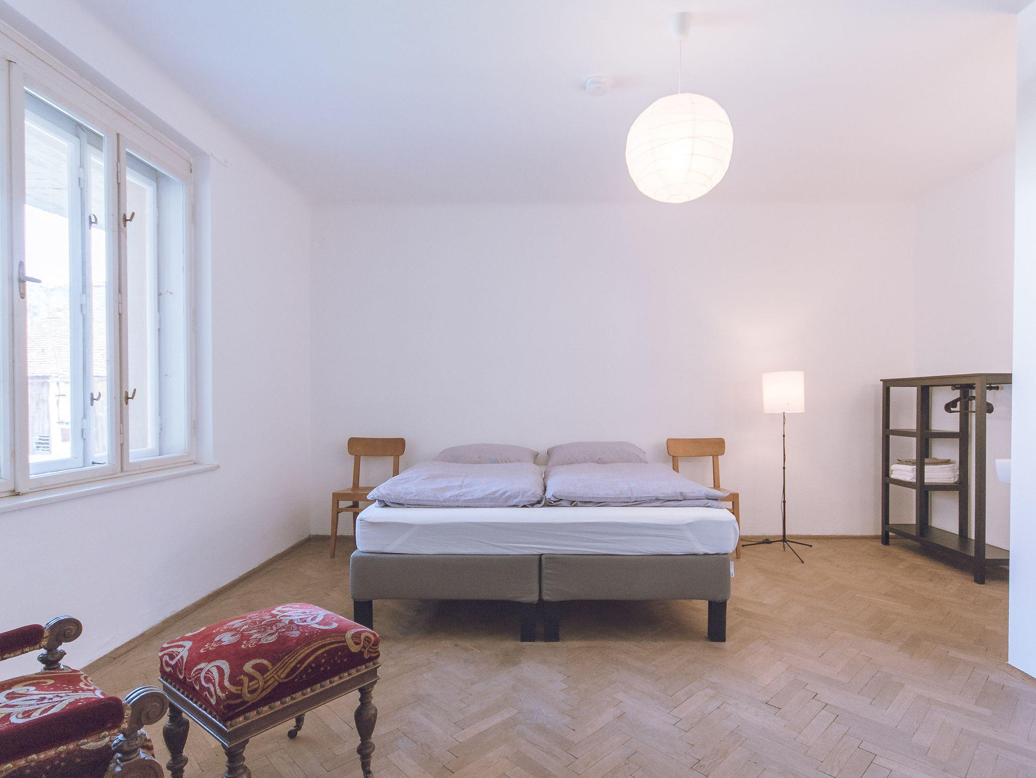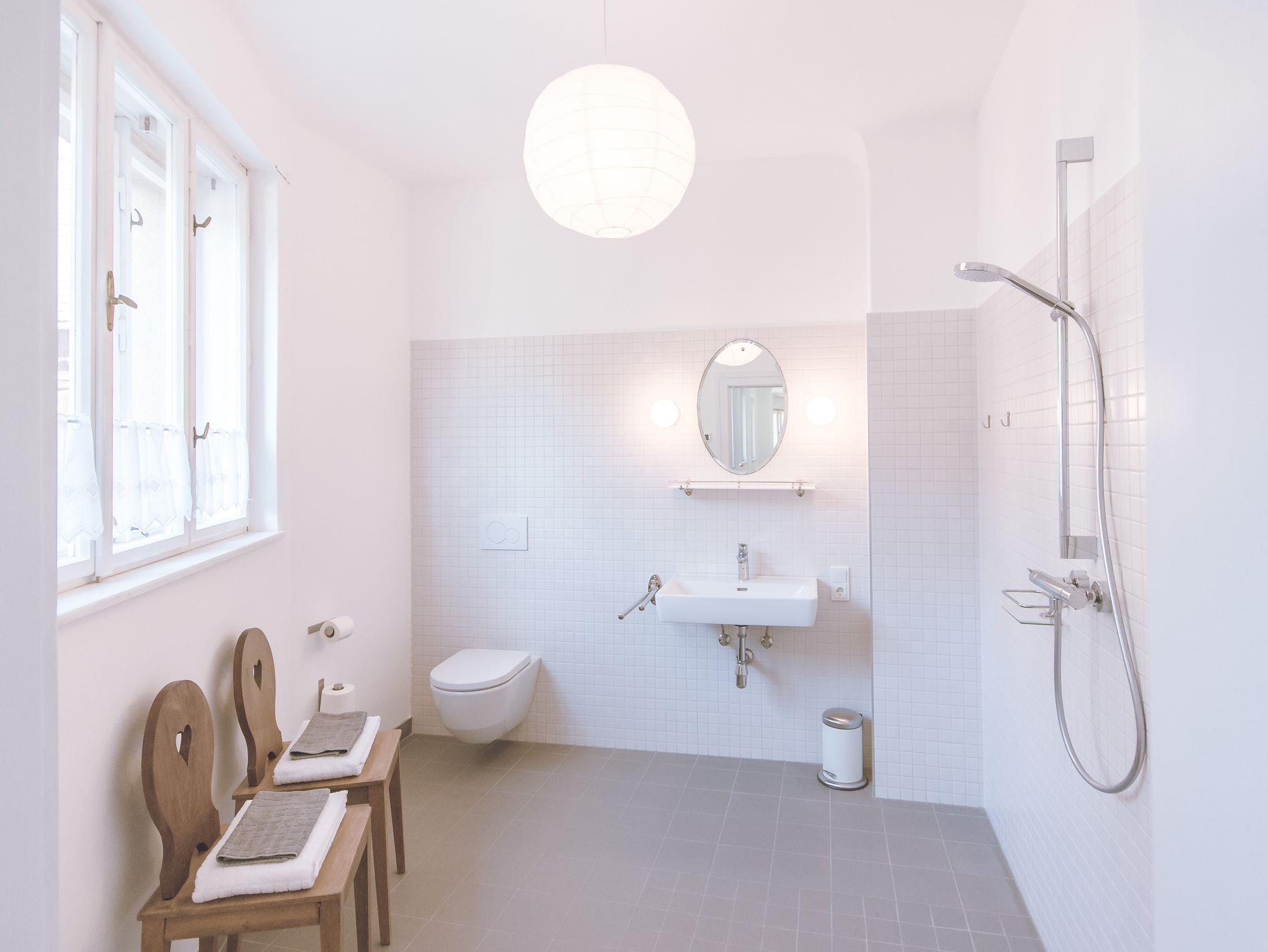 DAS GANZE HAUS* sind 4 Doppelzimmer mit Bad und ein Familienzimmer bestehend aus zwei Doppelzimmern und einem gemeinsamen großen Bad über den Gang. Das Wohnzimmer und die große Küche gehören ebenso dazu. Die Veranda und der Garten stehen auch zur Verfügung.