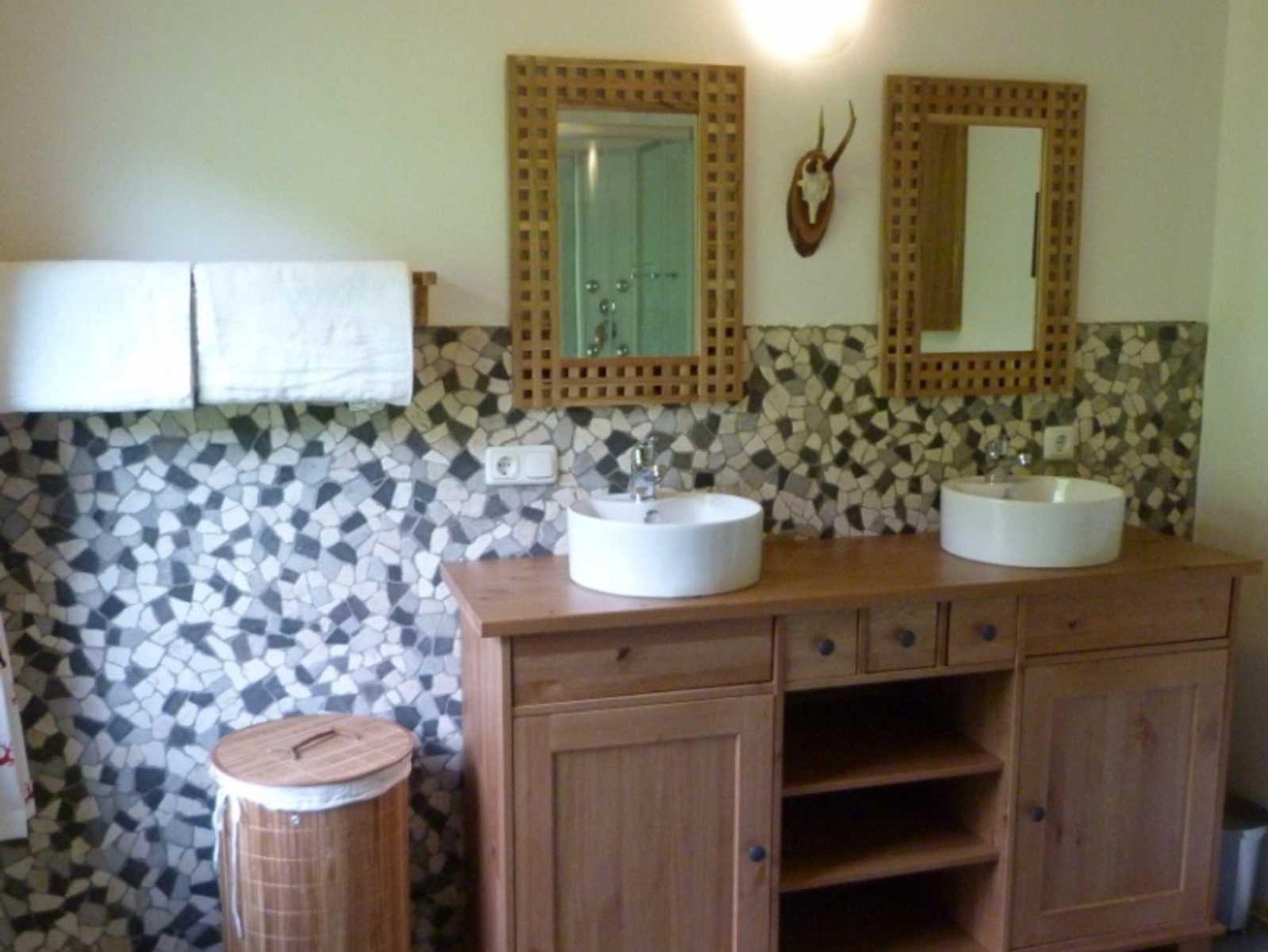 200 cm) mit Kaminofen, SAT-TV und DVD Player. Ausgang zur Terrasse. Bad mit Doppelwaschbecken, Dusche und Waschmaschine, sep. WC. Zur Verfügung: Holz (gratis) und Pellets. Internet