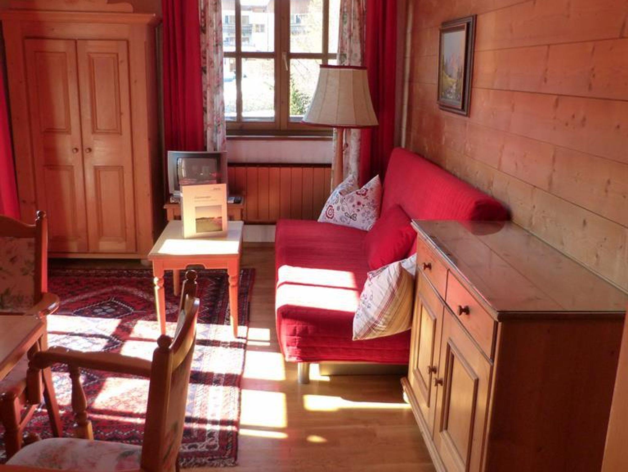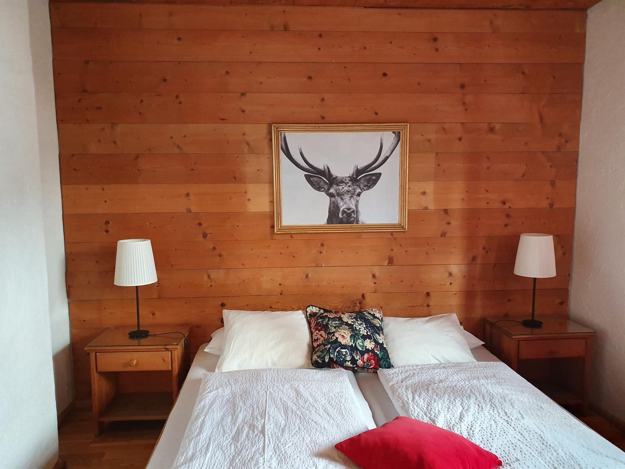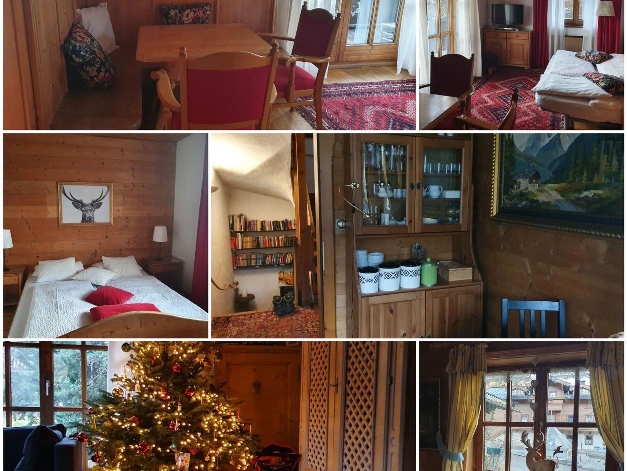 Im 1. Stockwerk, Größe ca. 43m2, für max. 4 Personen. Südseitig gelegen, mit sehr großem Balkon und Balkonmöbeln. Küchenzeile im Vorraum, komplett ausgestattet mit Geschirr, Kaffeemaschine und Wasserkocher. Badezimmer mit Du/WC, Schlafzimmer mit Doppelbett. Wohnzimmer mit gemütlicher Eßecke und Doppelbett zum Ausziehen. Parkettböden mit Teppichen belegt. Türgegensprechanlage mit Elektroöffner - Telefon - Kabel-TV - Bettwäsche - pro Person eine Garnitur Toilettwäsche mit wöchentlichem Wechsel.