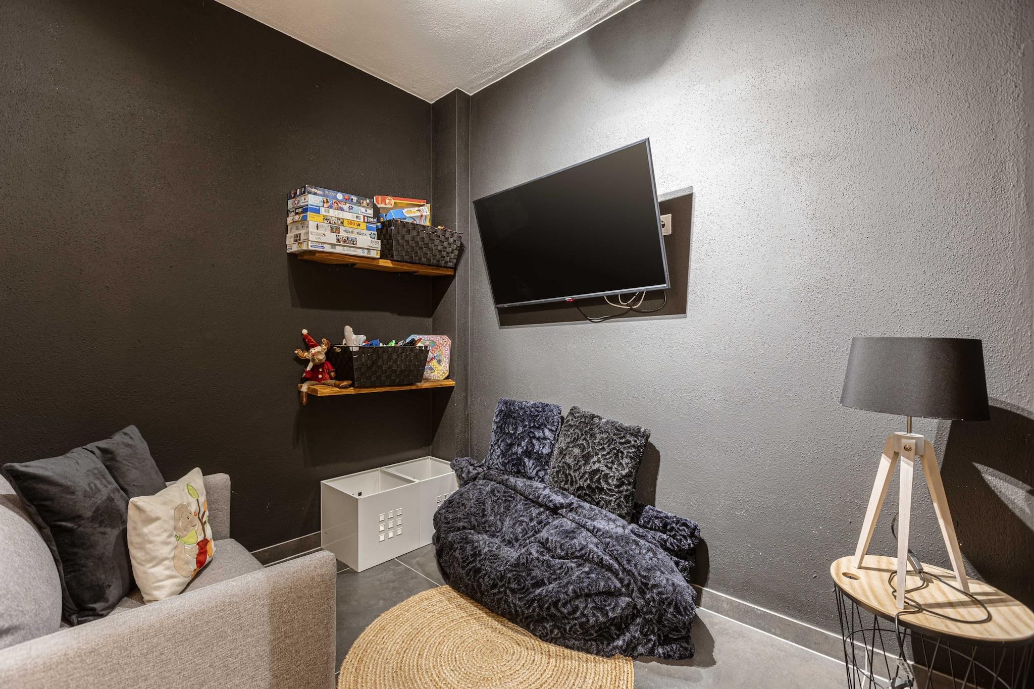 On 125 m² the Superior Chalet # 3B with Sauna offers space for up to 10 people. The holiday home has 2 bedrooms with comfortable double beds, 1 bedroom with 2 single beds, 1 bedroom with 2 bunk beds, 3 bathrooms with shower and toilet, a furnished terrace and balcony with mountain view. For a cozy end of the day, the cottage has its own sauna. The open kitchen in the is fully equipped: Cutlery and (cooking) utensils are available, a ceramic hob, oven, a dishwasher and a fridge with freezer compartment are also part of the equipment, as well as a toaster, kettle and coffee maker. A small ALPS RESORTS starter set with dishwasher tabs, dishwashing detergent (sample), sponge, garbage bag, cleaning cloth and dishtowel is ready upon your arrival. The special highlight in this vacation home is for the own playroom our little guests! WLAN is free of charge, satellite TV.