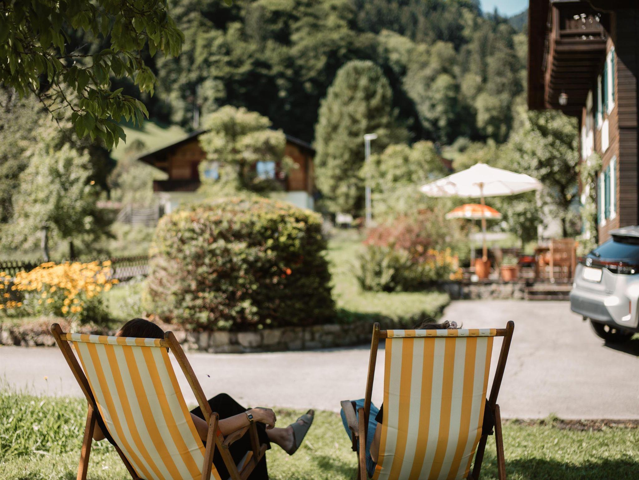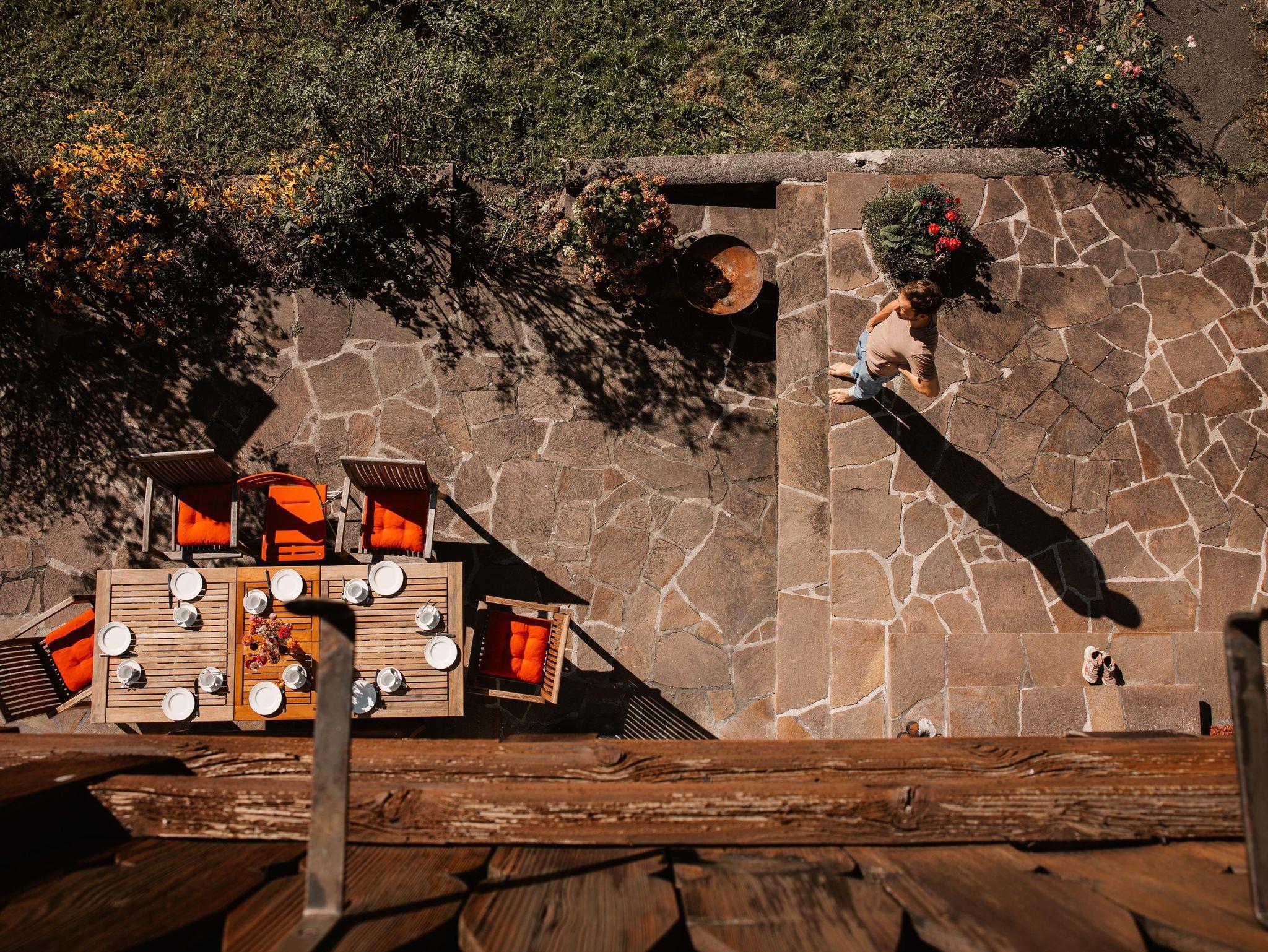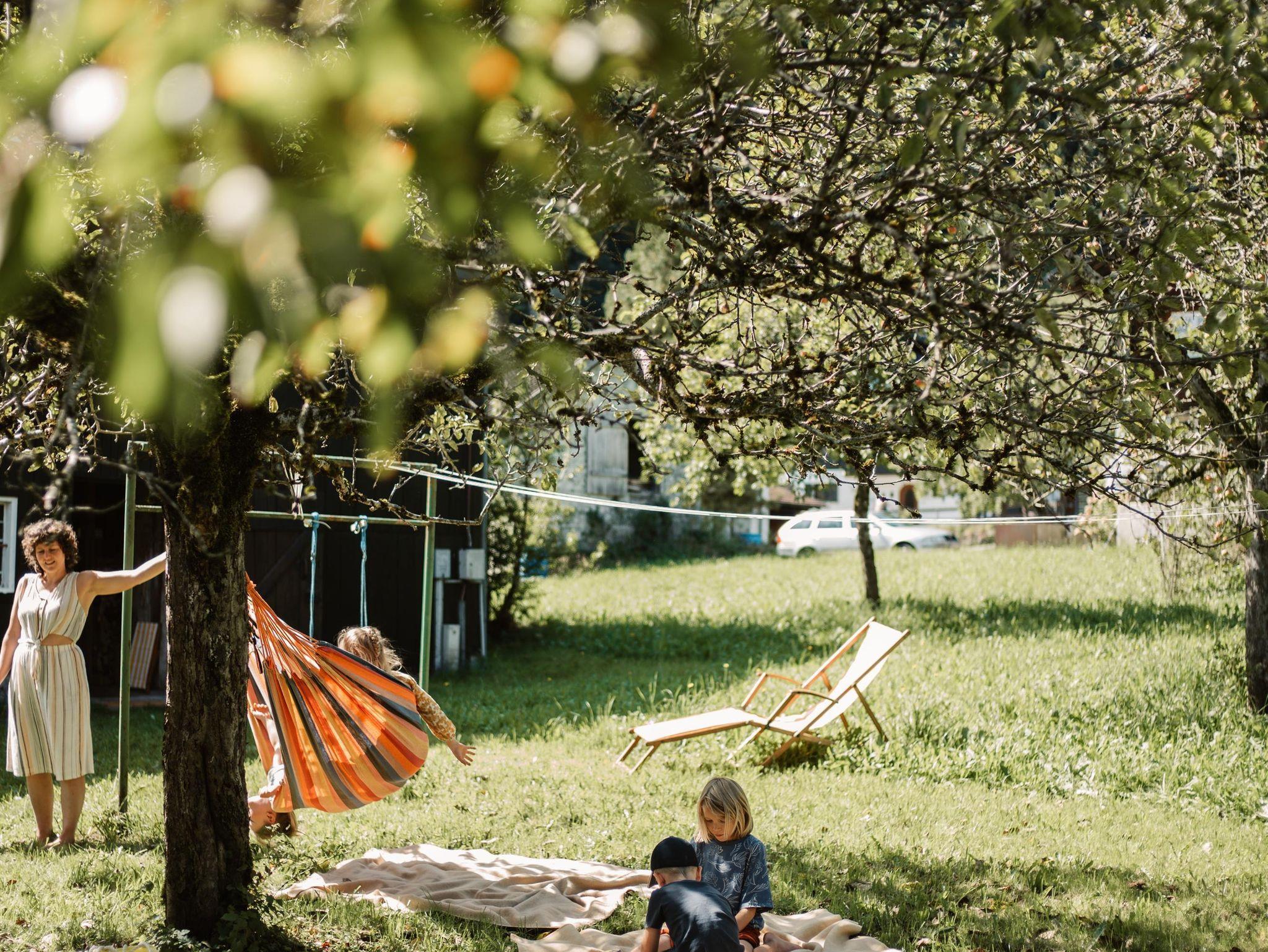Rund 250 m² Wohnfläche auf drei Stockwerken bieten acht Schlafzimmer, die alte Montafoner Stube und ein neues Wohnzimmer mit Kinderspielecke, eine Küche im Erdgeschoss, eine Frühstücksküche im Obergeschoss sowie drei Bäder und vier WCs. Auf der Terrasse lädt eine große Sitzgruppe zum gemeinsamen Essen im Freien ein – hinter dem Haus ein großer Garten mit Obstbäumen, Liegestühlen und Hängematte. Hier lässt sich der Bergsommer ebenso genießen wie die klare Winterluft.