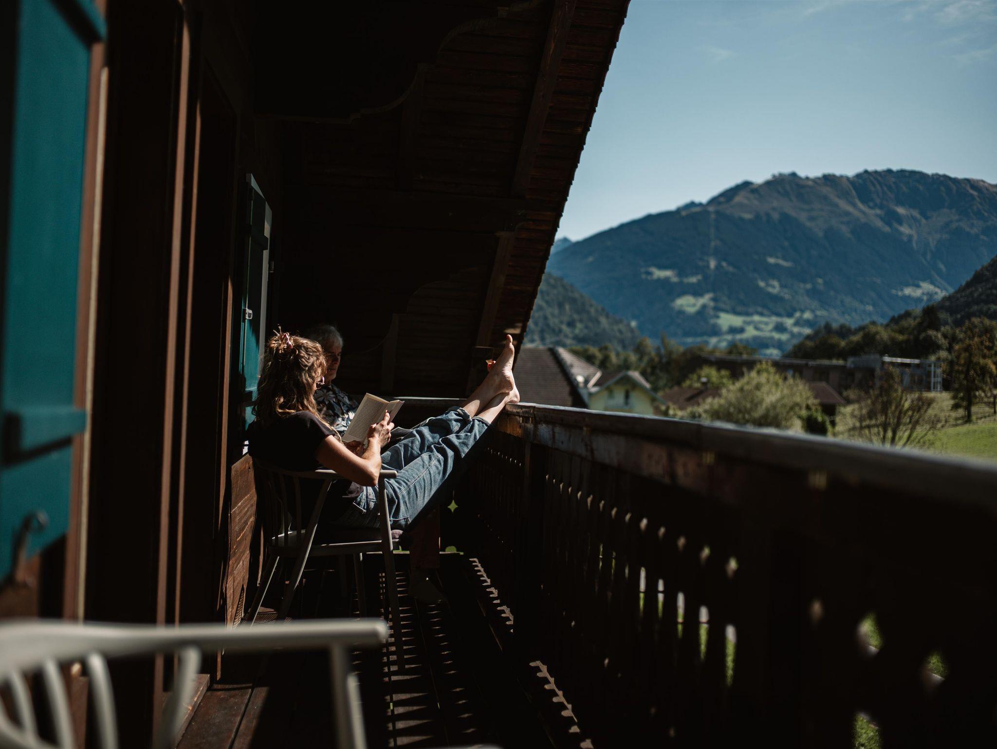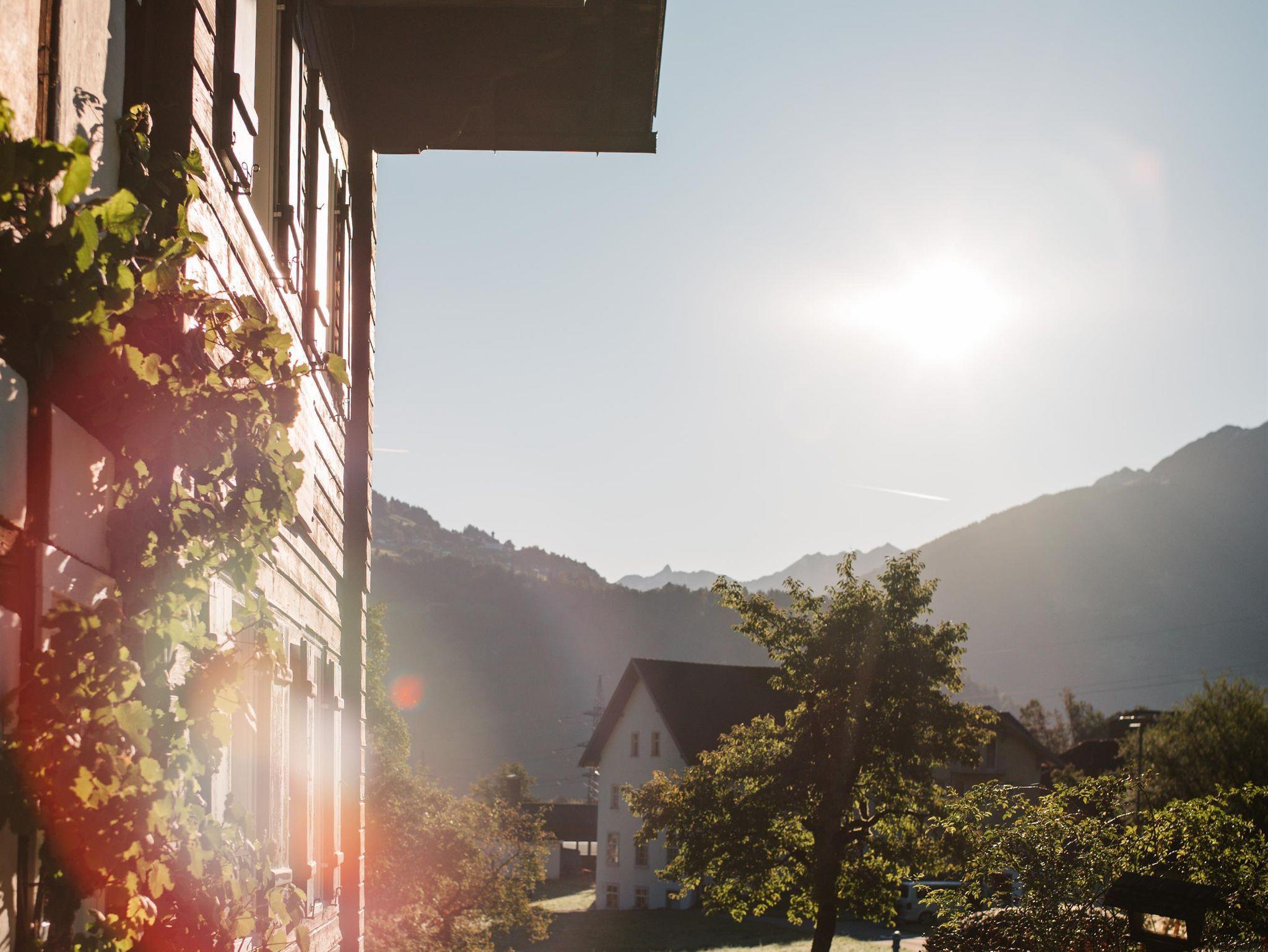 Das Hus Sigritta liegt mitten im Grünen, umgeben von Bergen, Wiesen und Obstbäumen. Die Talstation des Skigebiets Golm ist nur wenige Gehminuten entfernt – bei genügend Schnee führt die Abfahrt direkt bis in den Skikeller. Auch Wanderwege und Radtouren starten in unmittelbarer Umgebung.