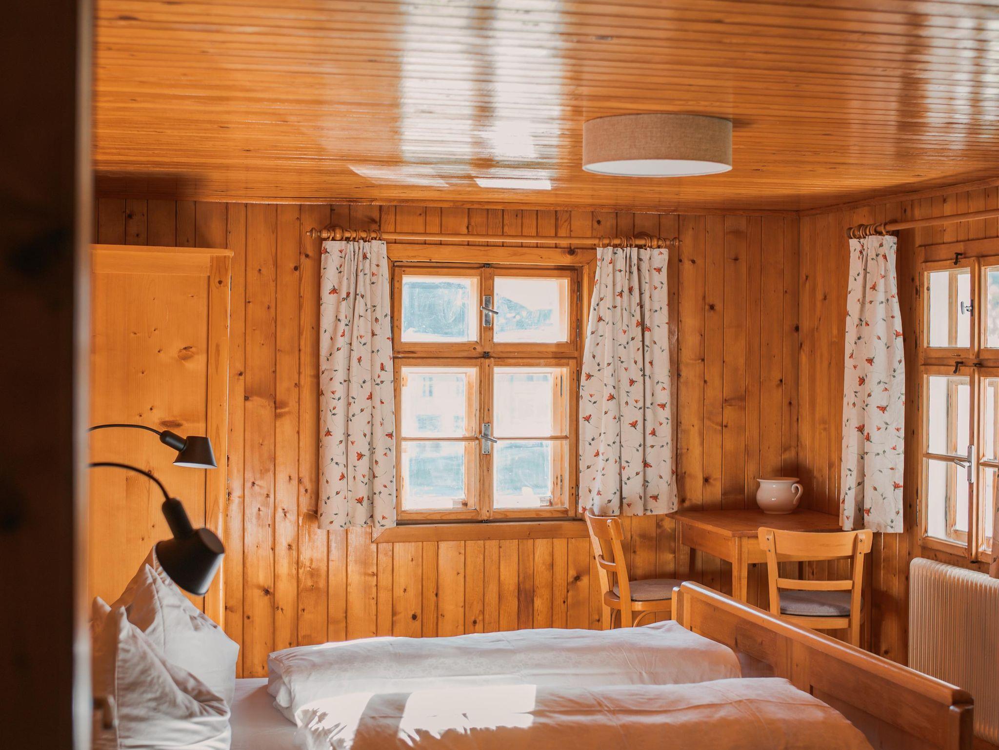Das Hus Sigritta verbindet Geschichte mit Komfort für Gruppen bis 15 Personen. Neben großzügigen Gemeinschaftsräumen gibt es acht Schlafzimmer auf drei Etagen: fünf Doppelzimmer (alle mit Waschbecken, zwei mit Balkon), ein Zimmer mit 1,40 m Bett, ein Einzelzimmer (100 × 200 cm) und ein Stockbettzimmer (je 90 × 190 cm). Bettwäsche und Handtücher sind inkludiert.