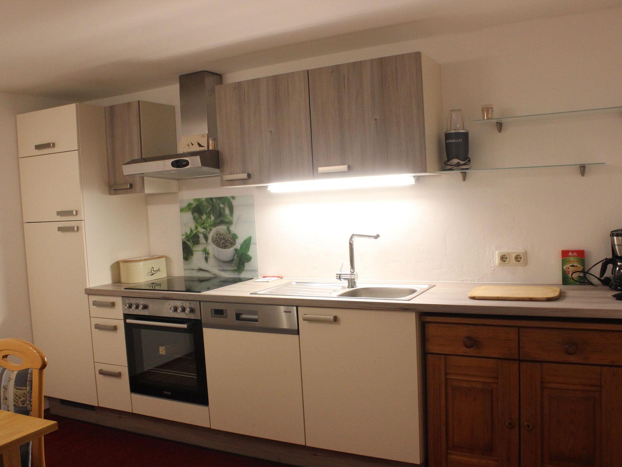 Die KÜche ist voll ausgestattet mit Herd, Backofen, Dunstabzug, kühlschrank, Tiefkühlfach, Küchengeräte, etc.