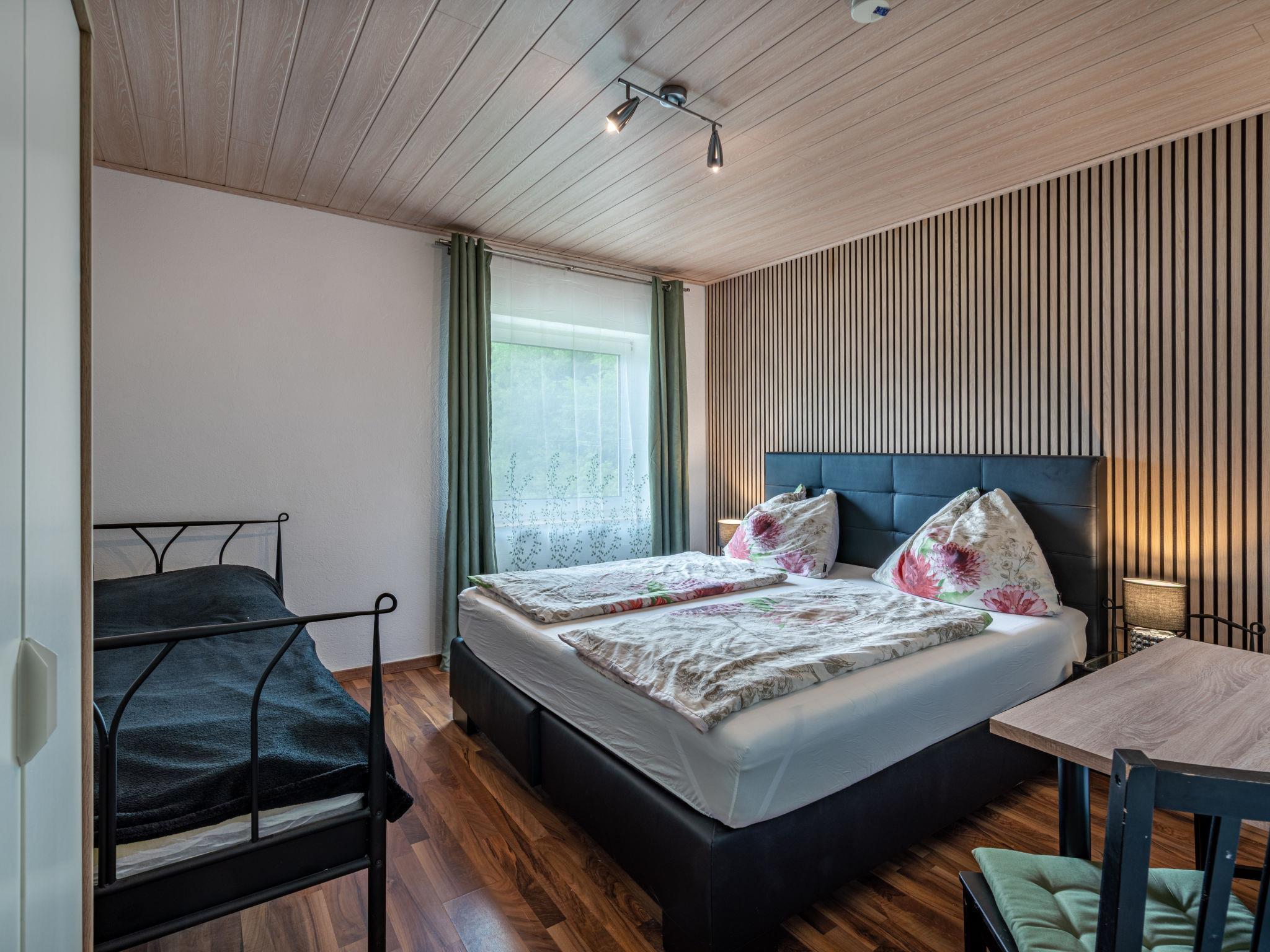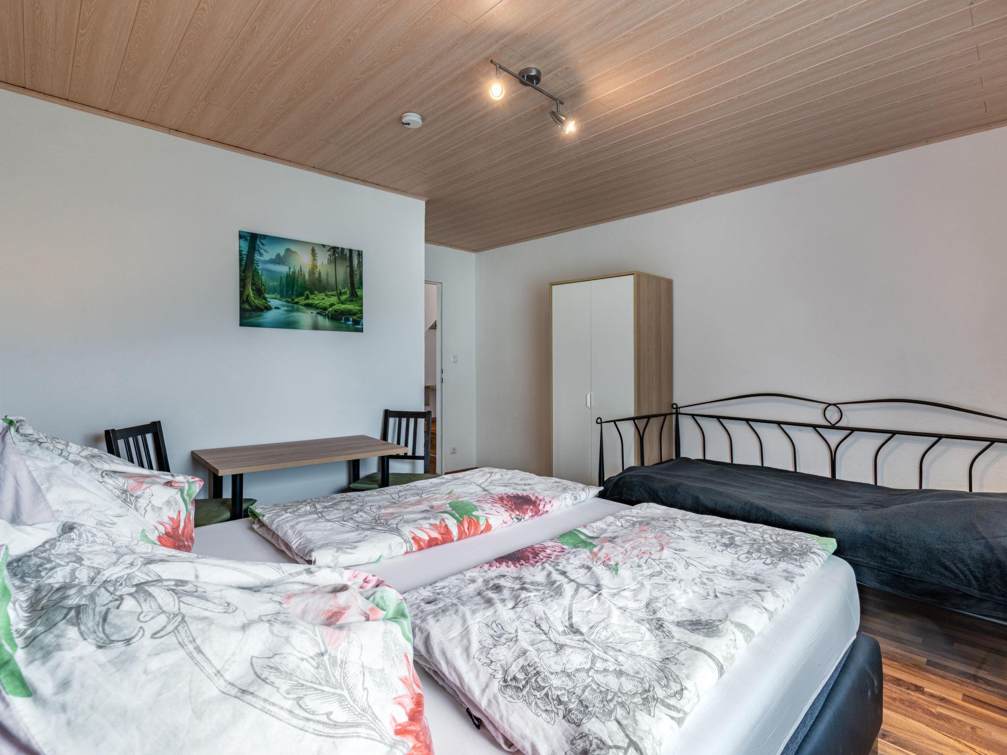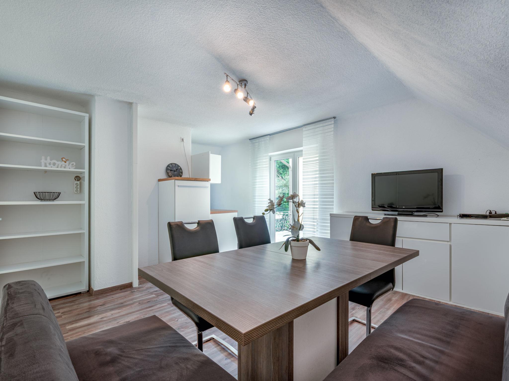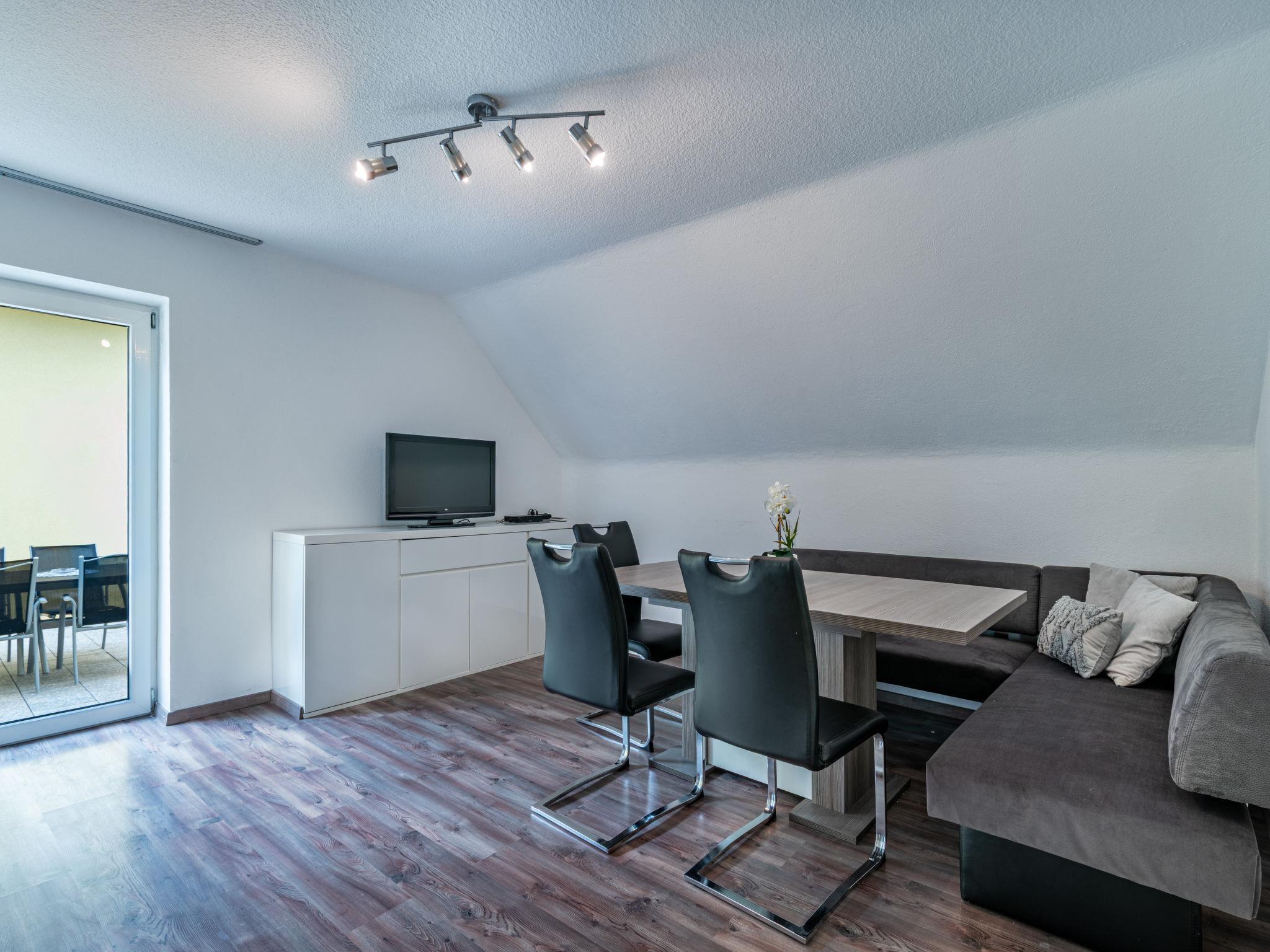 4-room apartment 107 m2 on 1st floor. Fully renovated in 2017: living/dining room with satellite TV (flat screen), radio. Exit to the terrace. 2 double bedrooms, each room with hand-basin. Exit to the balcony. 1 room with 3 beds. Open kitchen (4 hot plates, oven, dishwasher, microwave). Bath/WC, sep. WC. Balcony, large terrace 30 m2. Terrace furniture. Facilities: Internet (WiFi, free). Please note: maximum 1 pet/ dog allowed. Smoke alarm. The apartment has a separate entrance. Partially sloping ceilings.