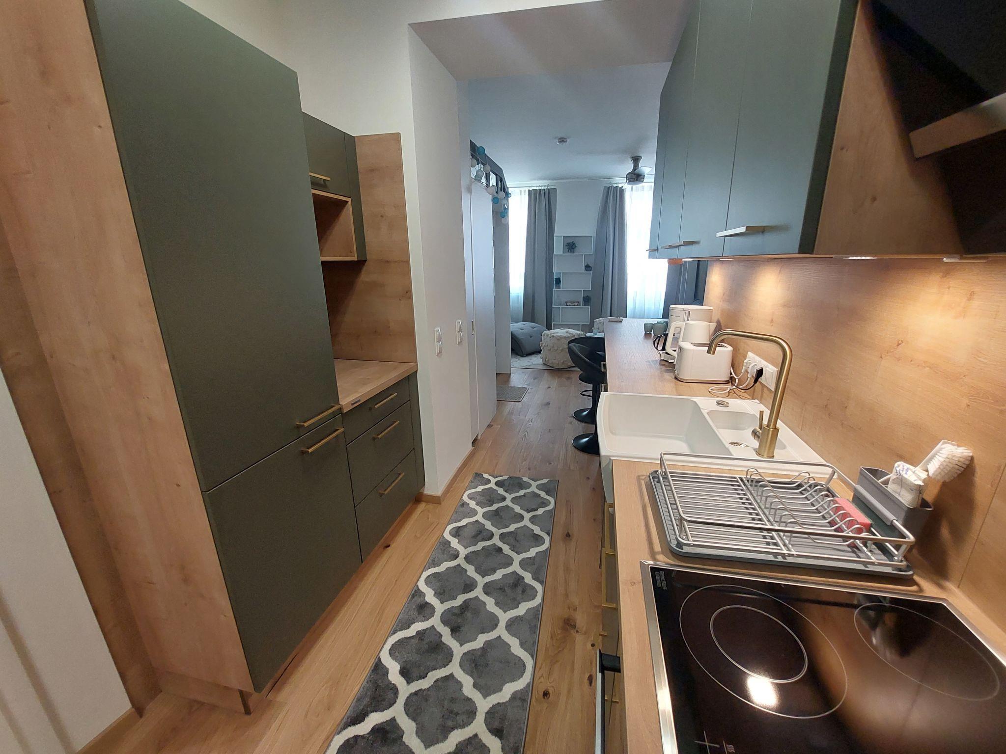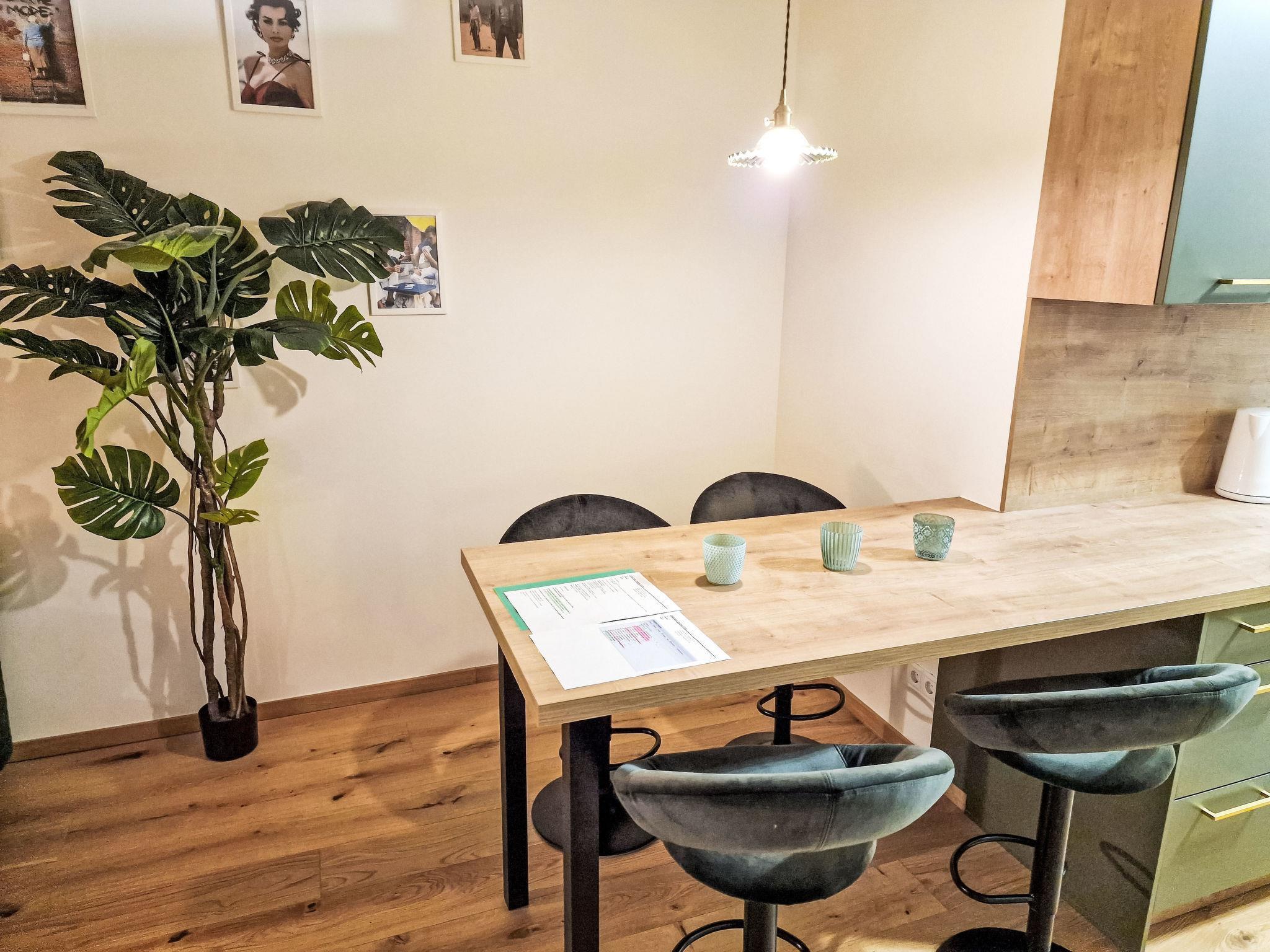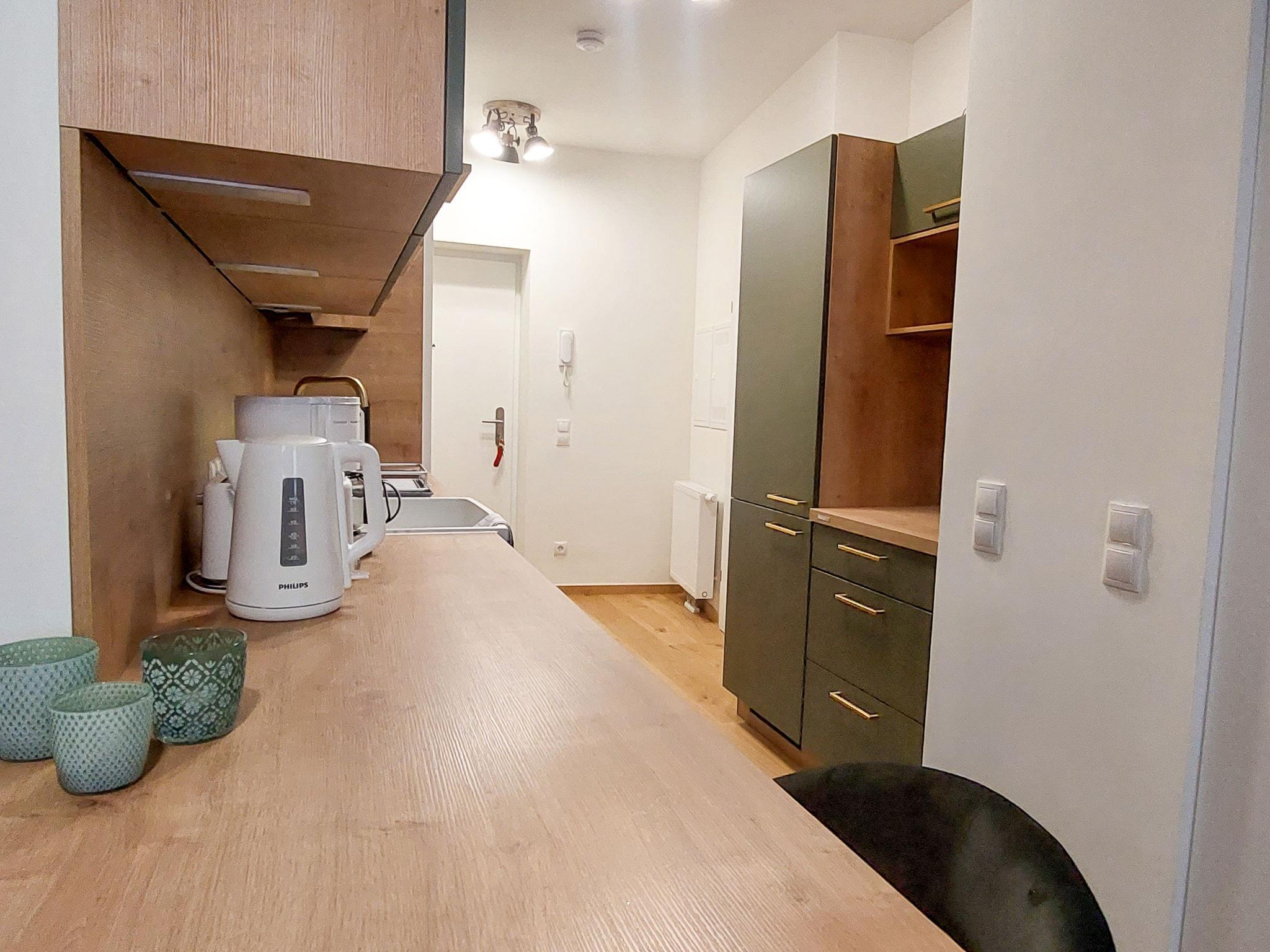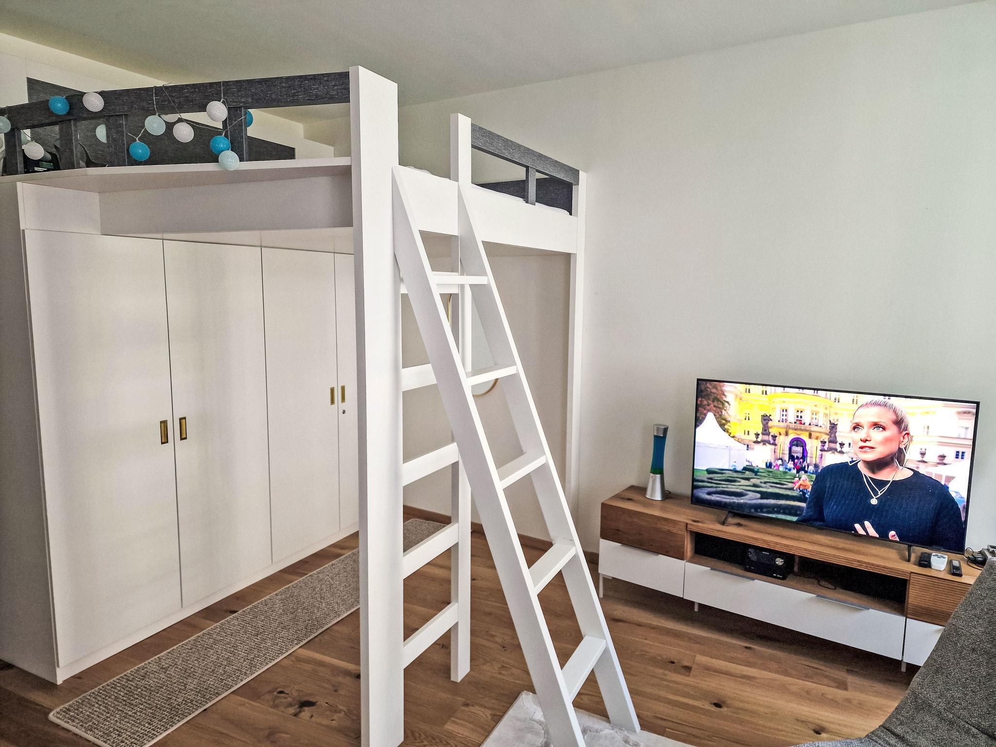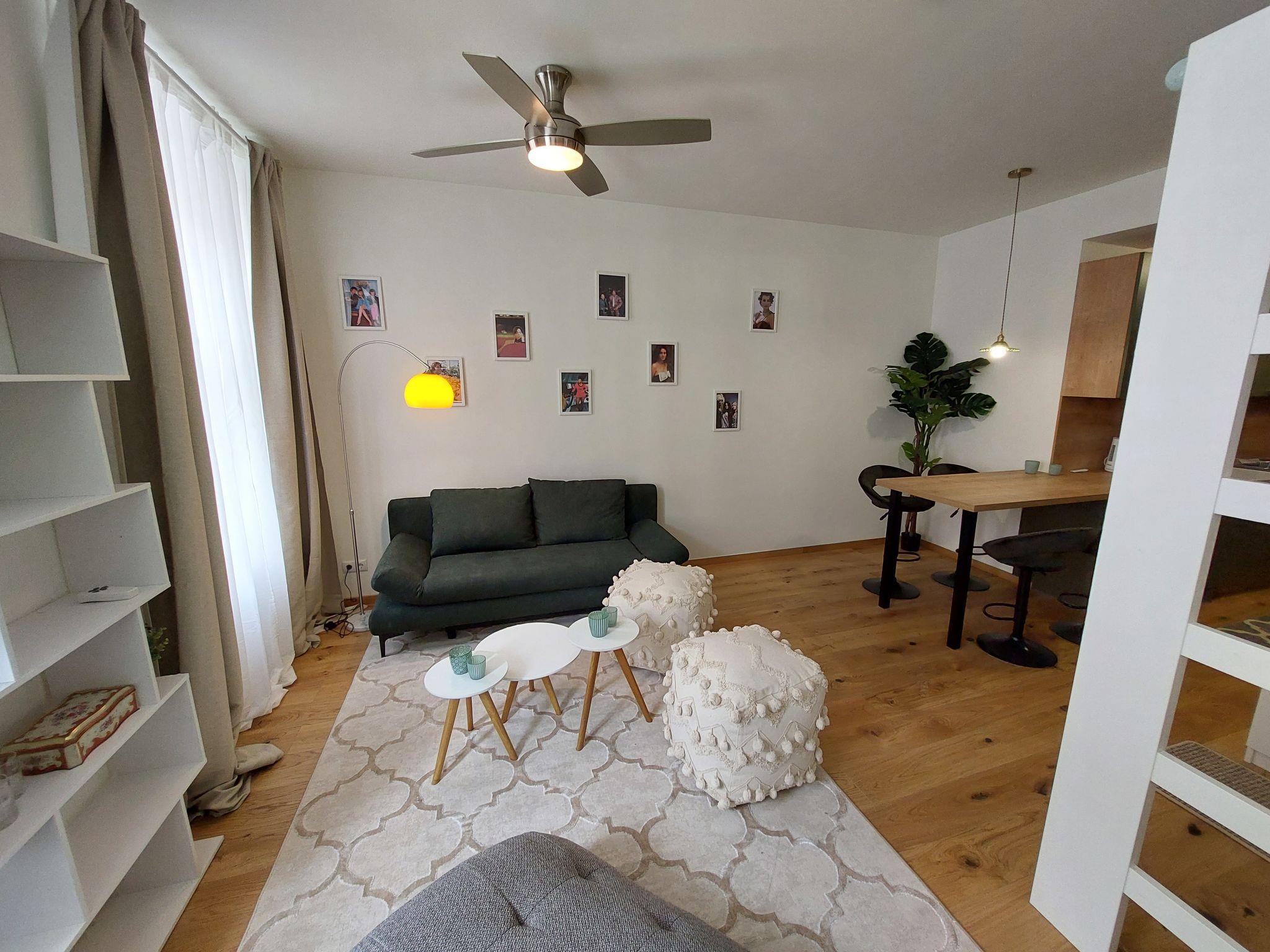 "Premium Apartment MariaHilf 1", 1-room apartment 42 m2 on 2nd floor. Object suitable for 4 adults. Spacious and bright, fully renovated in 2023, very comfortable and modern furnishings: entrance hall. Open living/sleeping room with 1 x 1 bunk beds (180 cm, length 190 cm), 1 pull-out bed (2 pers.), cable TV, flat screen, radio, CD-player and DVD. Open kitchen in the entrance (4 hot plates, dishwasher, toaster, kettle, electric coffee machine). Bath/WC. Heating. Wooden floors. Facilities: washing machine, iron, baby cot. Internet (WiFi, free). Please note: non-smokers only. Bunk beds (180cm wide) is a loft bed. Highspeed-Internet.